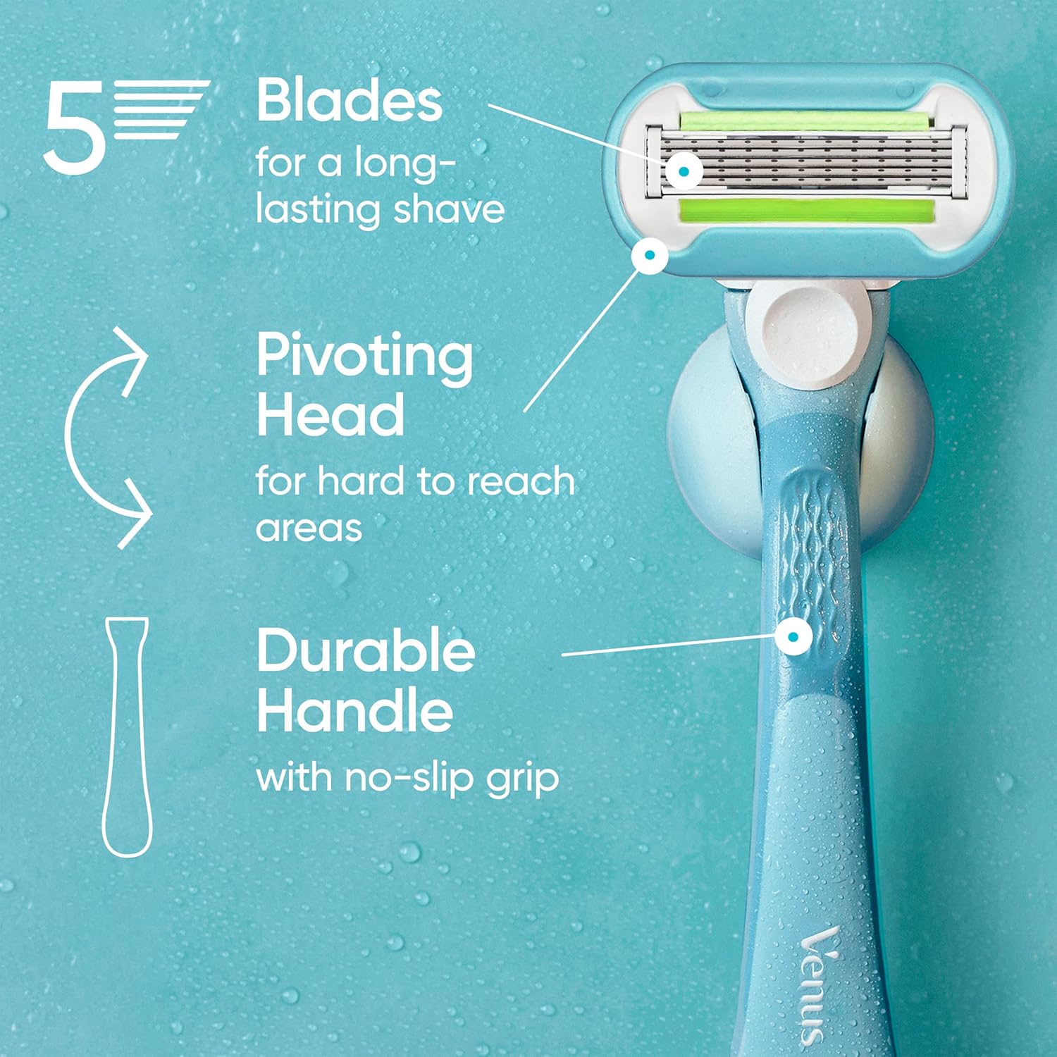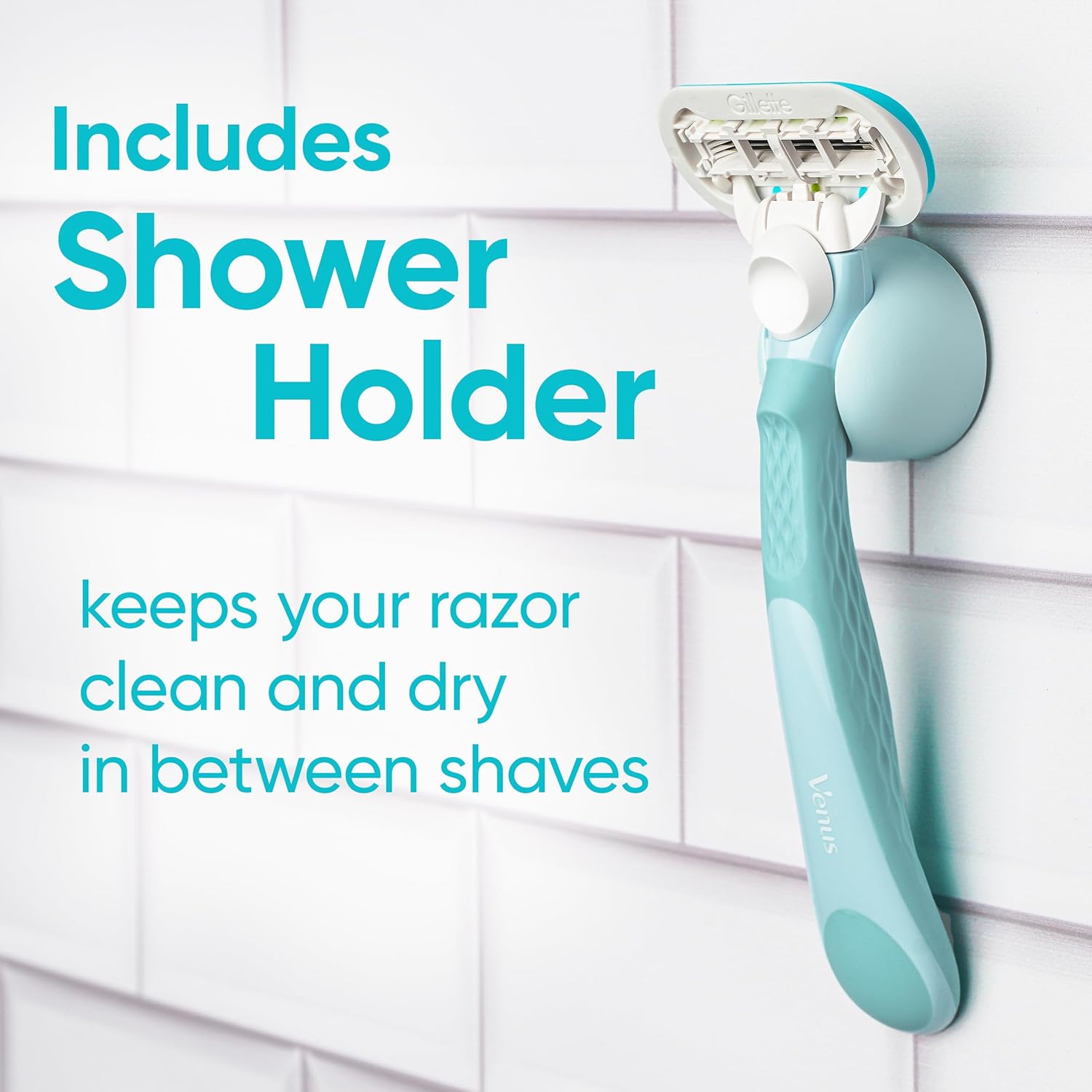 - DURABLE HANDLE, NO-SLIP GRIP: Keep the handle and change out the blades with any Venus razor blade refill*; included shower holder keeps blades clean and dry in between shaves *Except Simply Venus and Venus for Pubic Hair and Skin