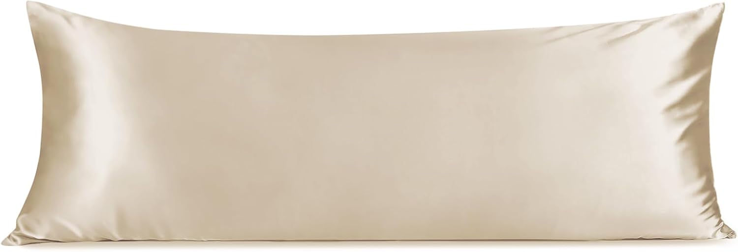 INFIIXSO Body Pillow Cover with Zipper, Luxury Mulberry Silk Body Pillow Case 20x54 Inches, Ultra Smooth and Soft Cooling Long Pillowcase, Gift for Women, Men(Beige)