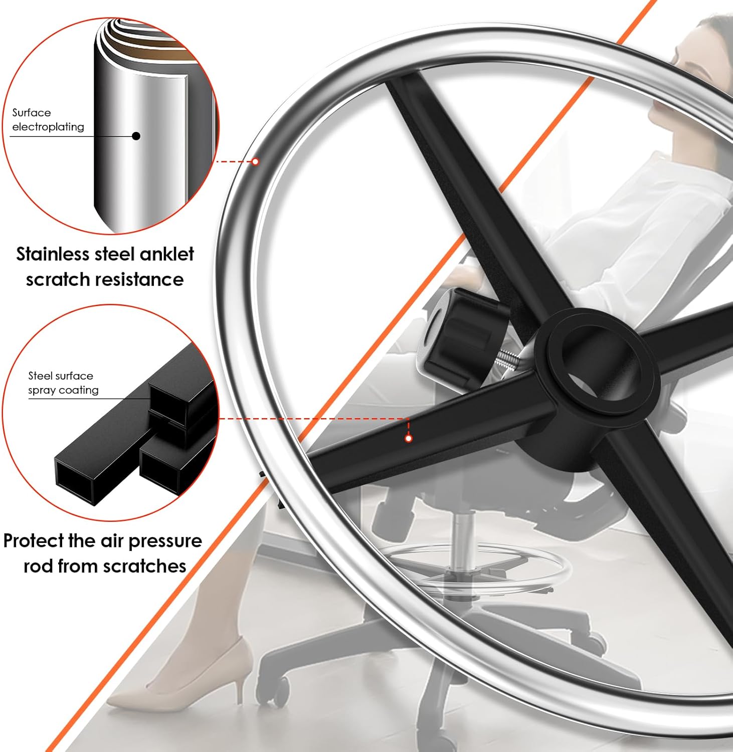 18" Chrome Foot Rest Ring for Drafting Stool or Office Chair,Office Chair Piston Foot Ring,Foot Rest (Silver, 18'')