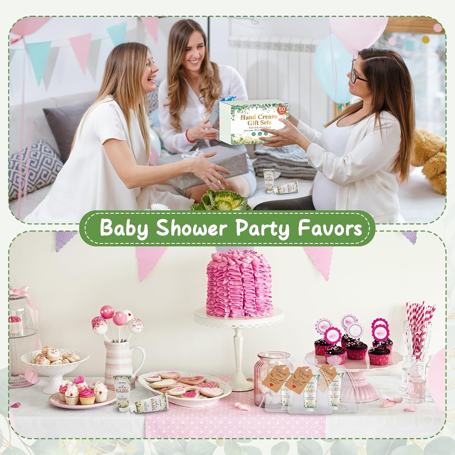 - 【50Pack Baby Shower Favors】This baby shower hand cream gift set includes 50pcs hand creams,50pcs organza gift bags,50pcs thank you cards and 1pcs DIY manual.sufficient quantity and perfect combination to meet your guest gift needs.