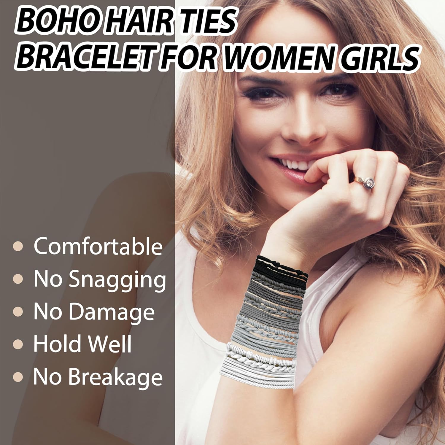 20PCS Boho Hair Accessories, Elastic No-Damage Hair Ties, Cute Bracelets for Women and Girls - All Day Hold for Thick, Thin Hair, and Ponytails