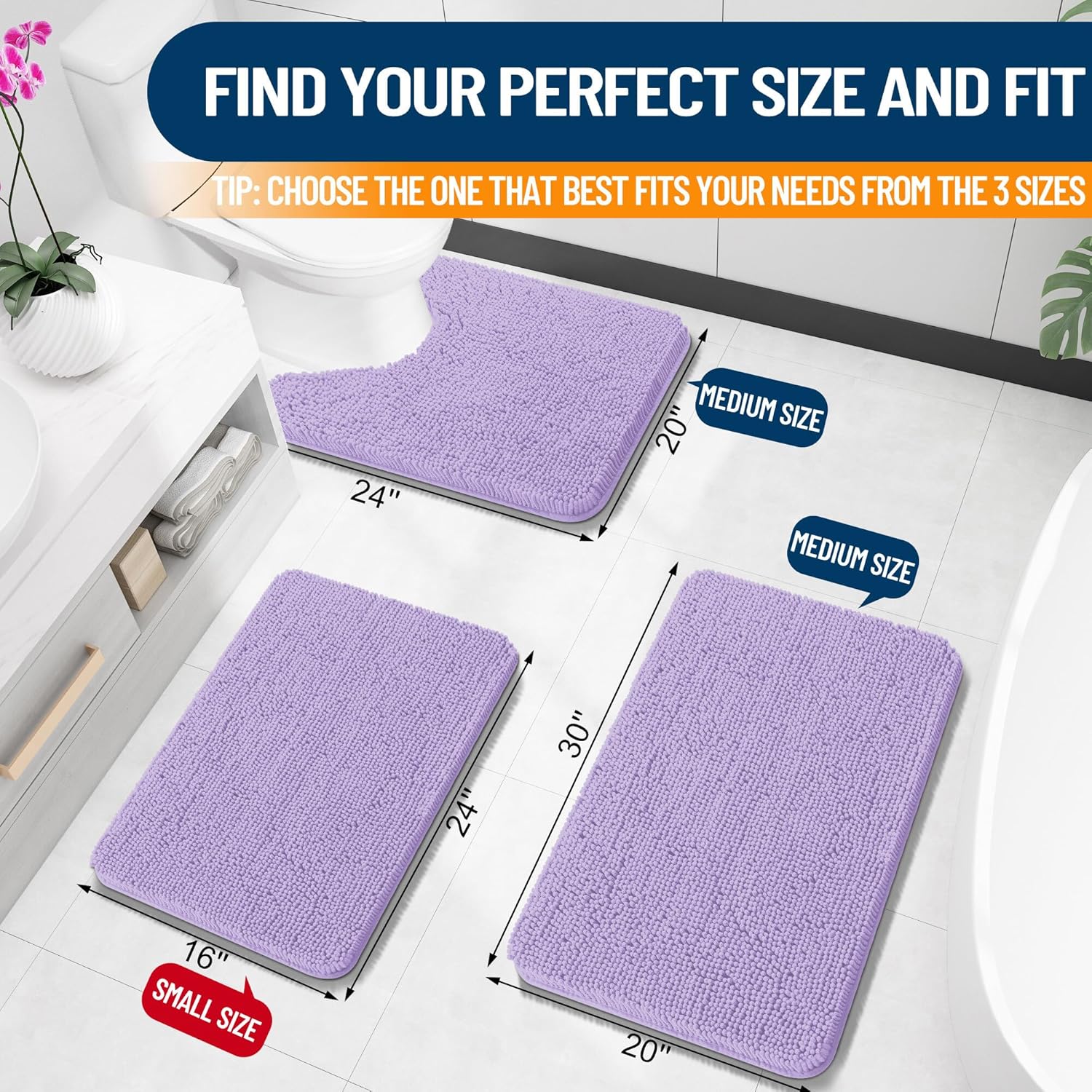 OLANLY Toilet Rugs U-Shaped 24x20, Extra Soft Absorbent Chenille Contour Bathroom Rugs for Toilet, Dry Quickly, Machine Washable, Non-Slip Bath Mat, Lavender