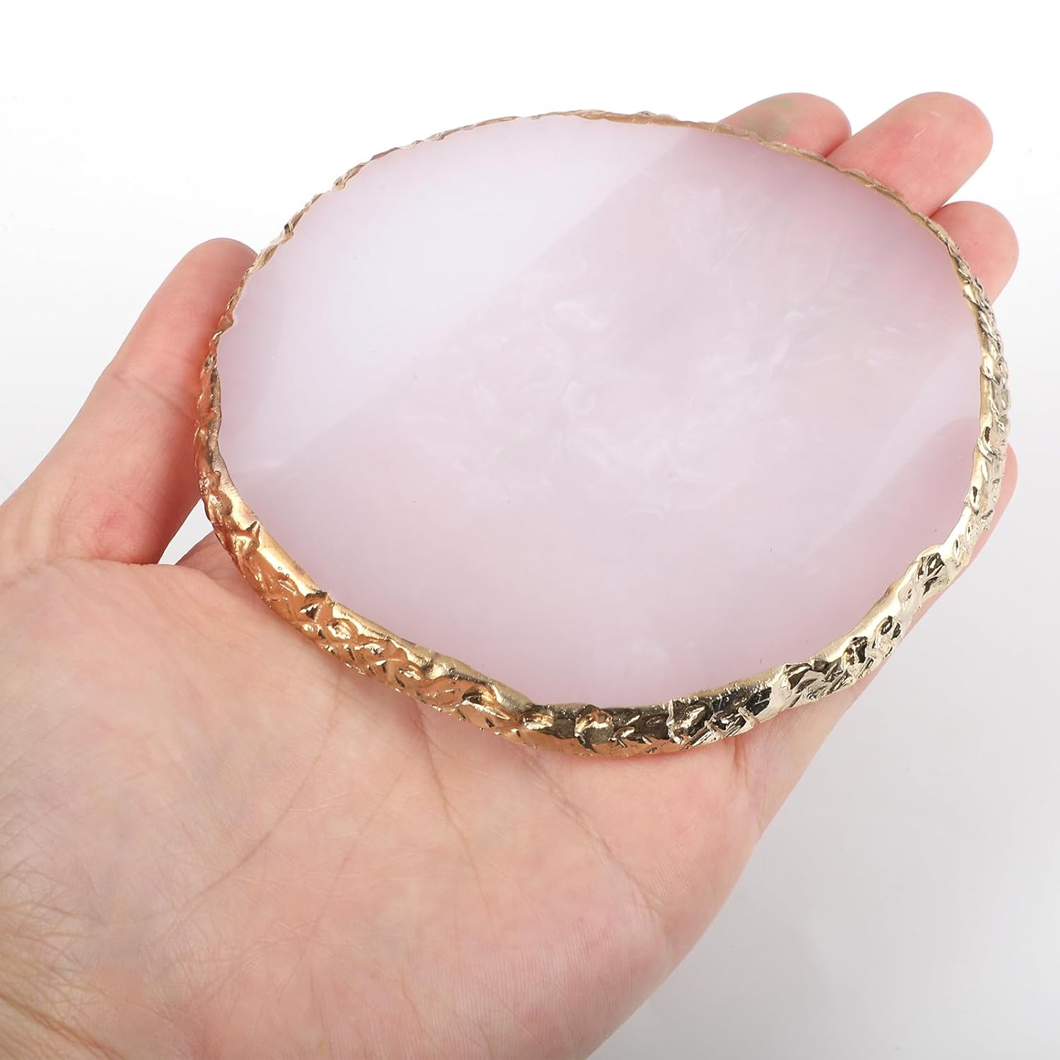 2 Pcs Resin Nail Art Palette, Nail Art Painting Mixed Color Palettes Gold Edge Nail Holder Nail Art Display Board (Coffee, White)