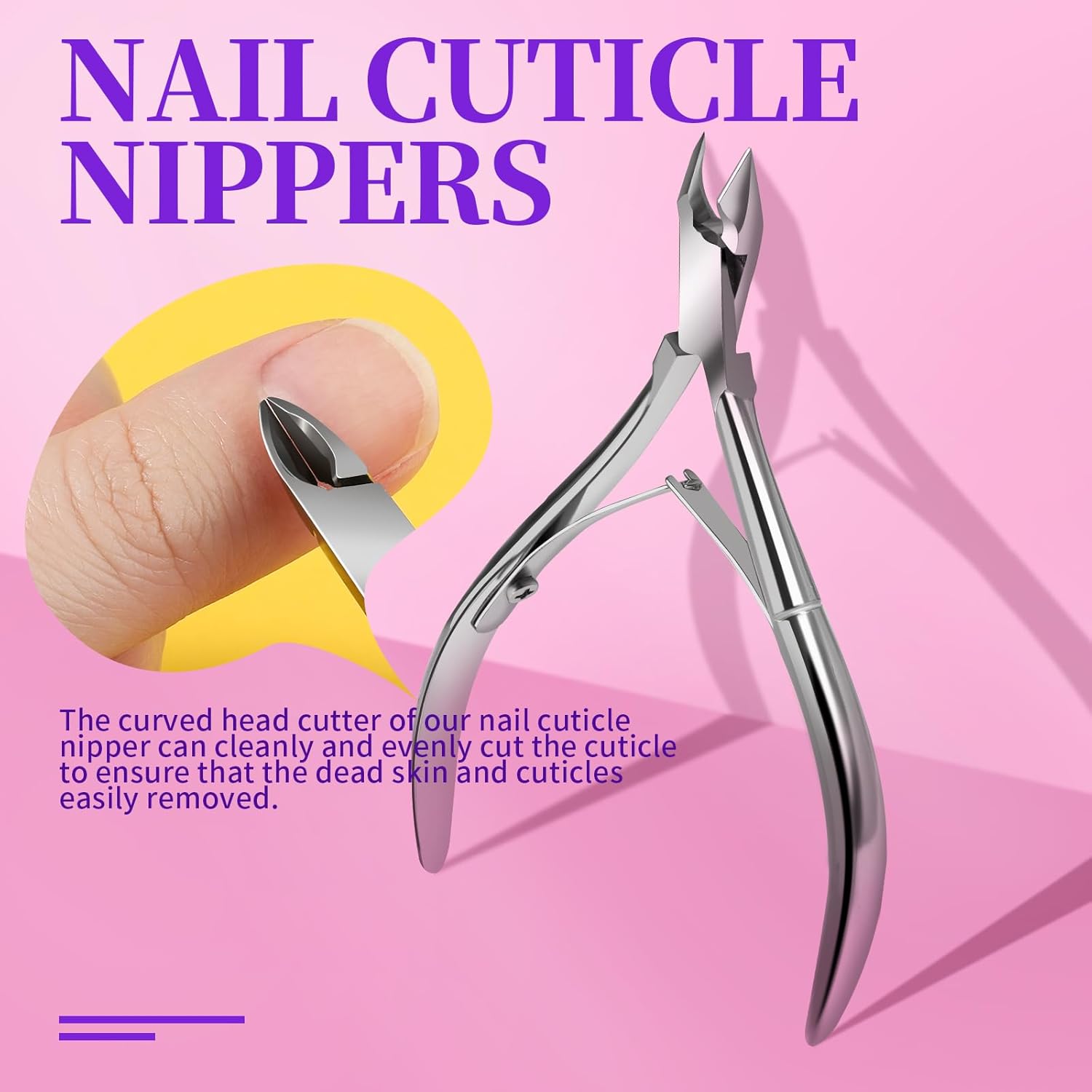 - Cuticle Trimmer & Cuticle Pusher & Cuticle Fork: The triangular side of nail cuticle pusher is very suitable for removing residue and dirt under nails. The spoon-shaped side used for pushing the cuticles together. It is also the best helper for removing the nail gel or polish residue. The curved head cutter of the nail nipper can cleanly and evenly cut the cuticle to ensure that the dead skin and cuticle easily removed. The cuticle fork can remove the hard dead skin around the nails.