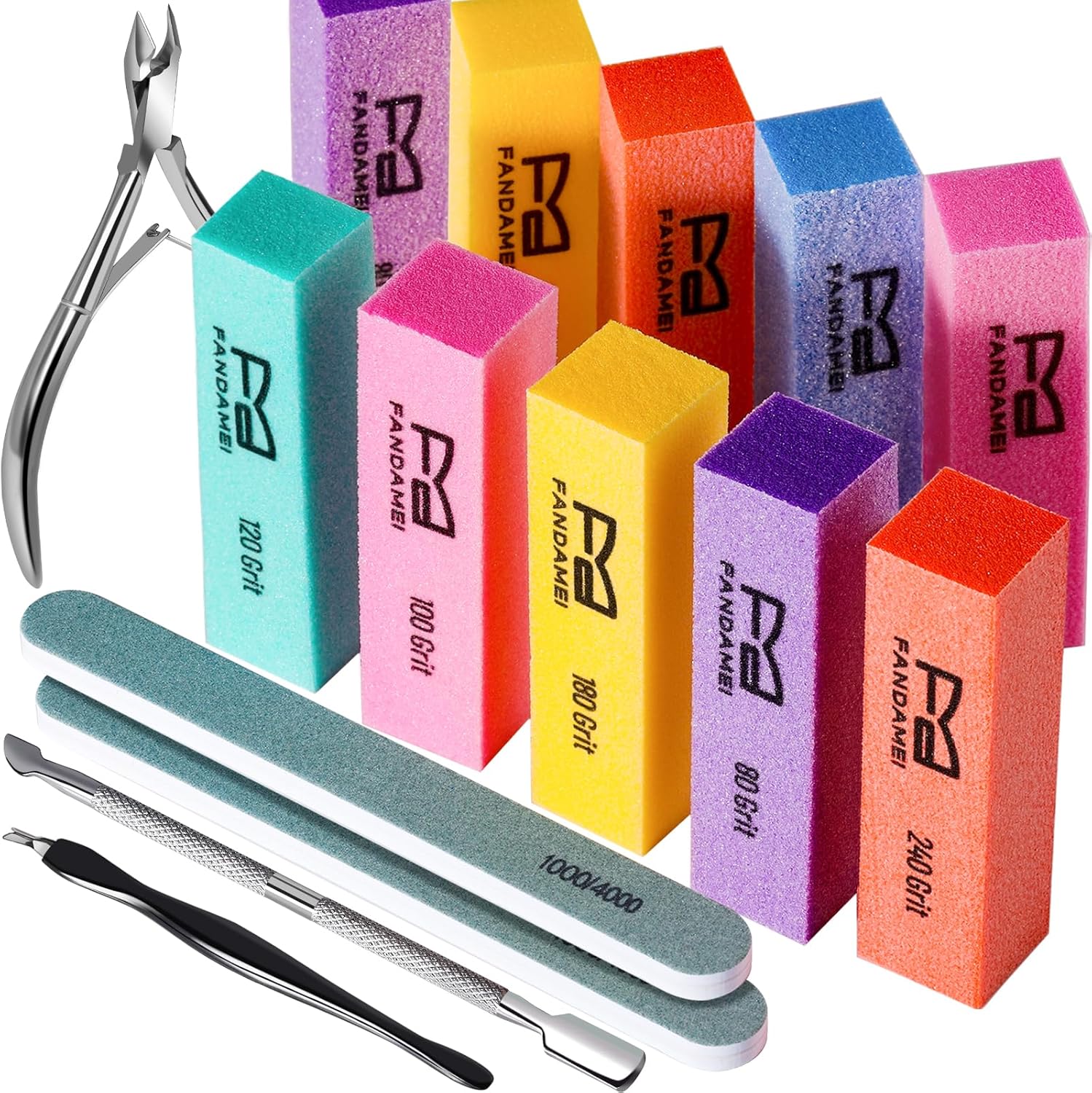 FANDAMEI Nail Buffer Block, 10 PCS Buffers for Nails with Different Grit, Nail Block Buffer, Nail Buffing Block, Buffer Nail File, Cuticle Trimmer, Nail Care Kit, Nail Tools, Manicure Tools, Nail Kit