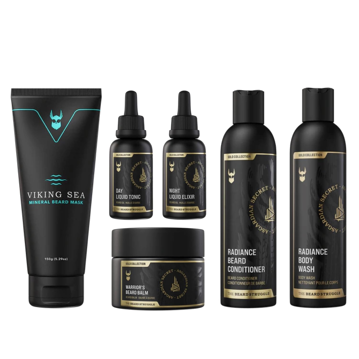 The Complete Beard Growth Kit by Beard Struggle - Mens Grooming Kit with Balm, Mask, Conditioner, Wash & Oils - Asgardian Secret, Gold Collection
