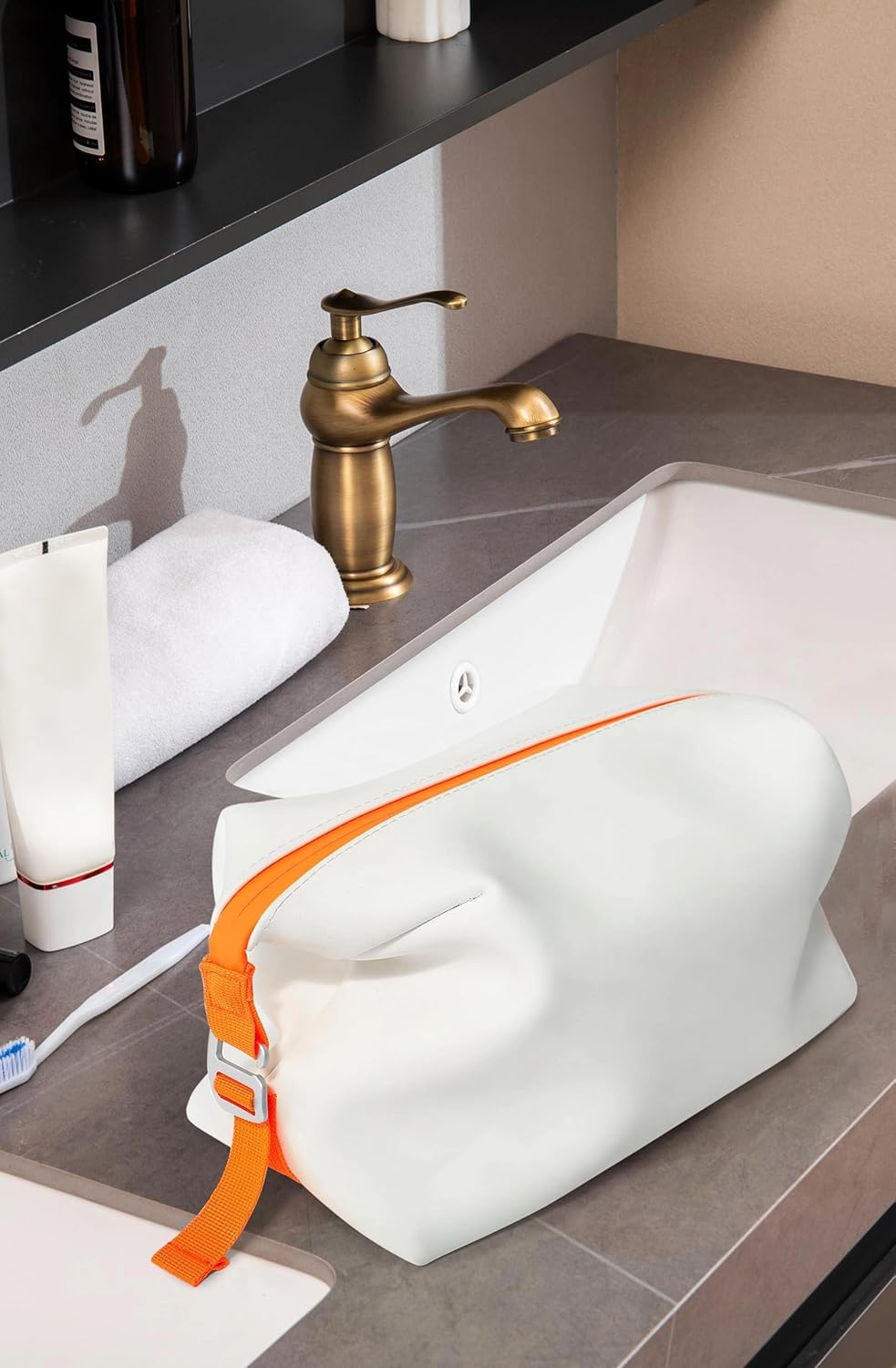 6"x 9.84" 4.5L Large Silicone Toiletry Bag,Waterproof Leakproof Foldable Travel Organizer,Dopp Kit Alternative for Men & Women,White