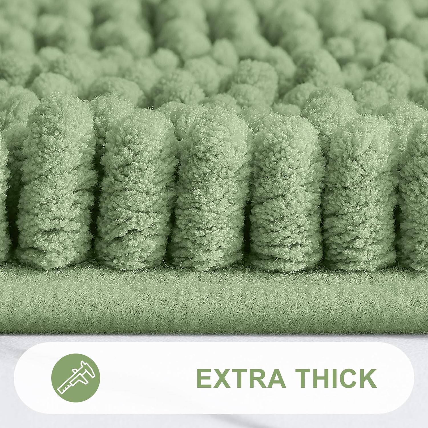 Grandaily Chenille Striped Bathroom Rugs 30x20, Extra Thick and Absorbent Bath Mats, Non-Slip Soft Plush Shaggy Shower Carpet, Machine Wash Dry, Bath Rug for Bathroom, (Medium, Sage Green)