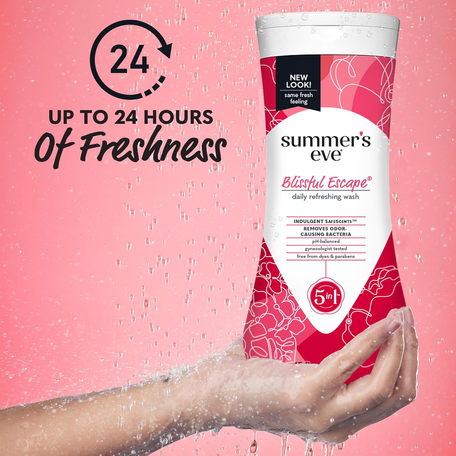 - Summer’s Eve Blissful Escape Daily Refreshing Feminine Wash removes odor-causing bacteria for all day freshness