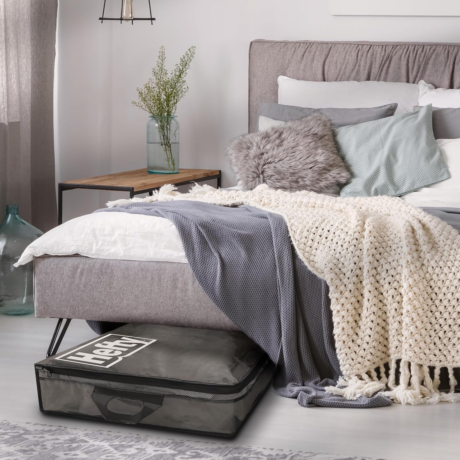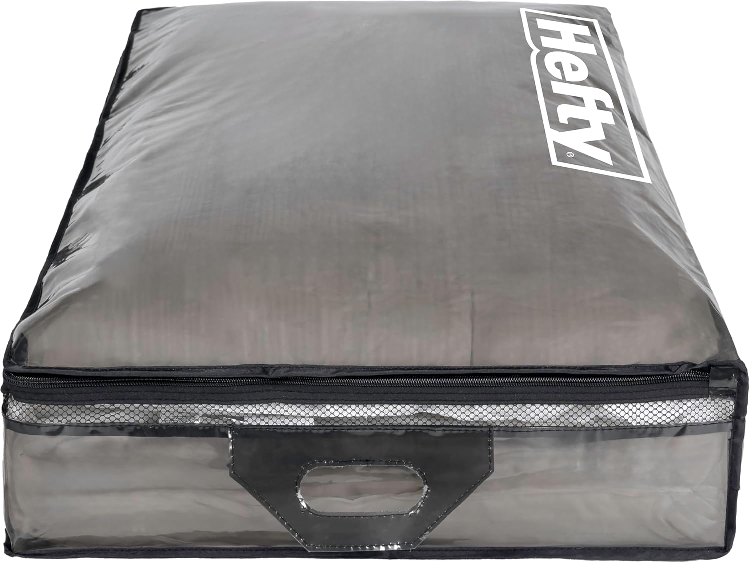 Hefty Underbed Flexible Tote with Breathable Mesh, Double Zipper, 2 Handles – Ideal for Moving or Clothes & Apparel Storage, Alternative to Plastic Bin, Organizer or Container