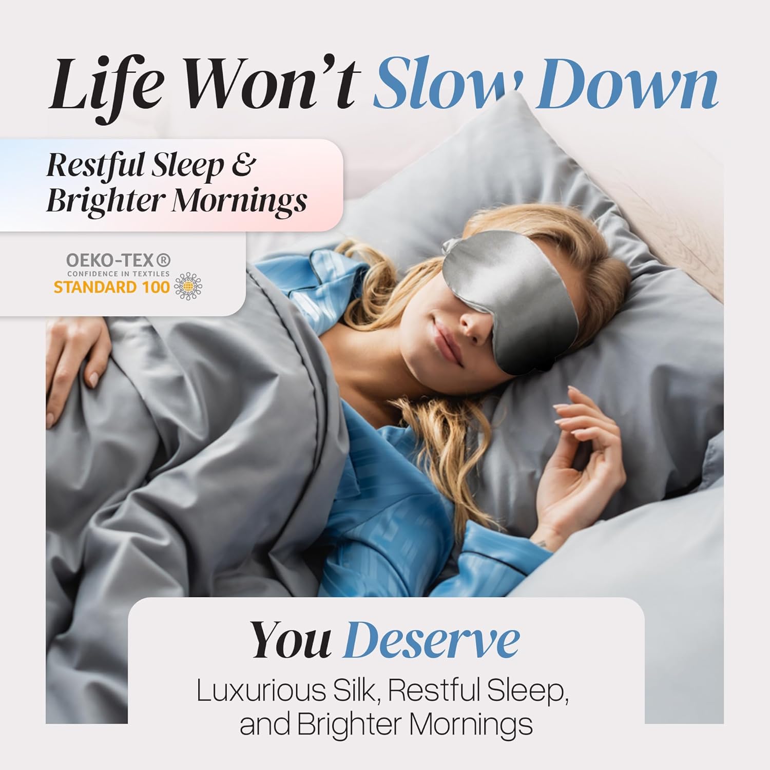 - 【Indulge In The Softness Of High Grade 100% pure 6A Mulberry Silk】Silk’s properties provide that unparalleled smooth to the skin comfort! Help keep your skin clear, reducing the chances of breakouts. Experience a luxury sleep mask that’s moisturizing, hypoallergenic, and gentle on the skin. Made with OEKO-TEX certified, non-toxic materials, ensuring it’s safe and free from harmful substances. Your skin will thank you!