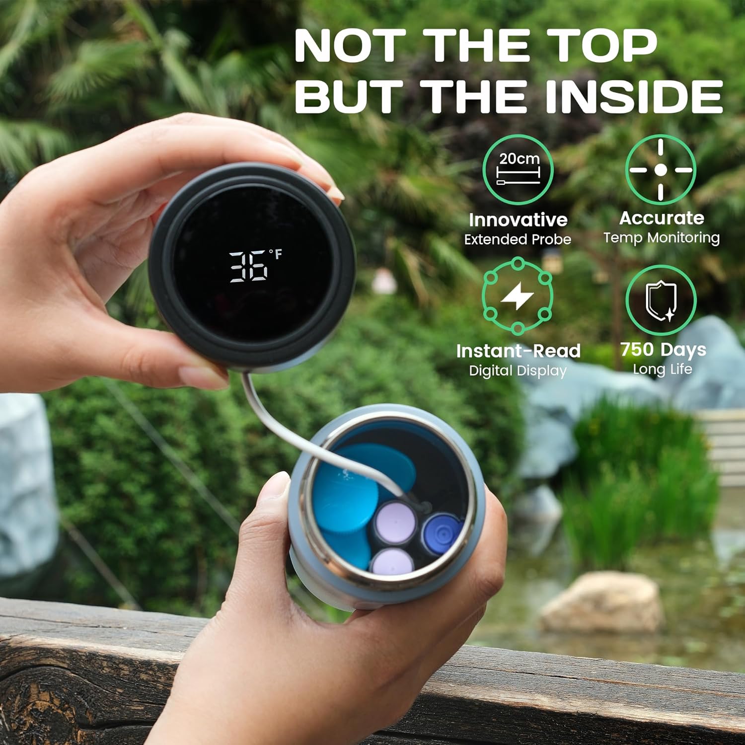 - REAL-TIME TEMPERATURE MONITORING: Stay informed with a bright digital display integrated into the bottle cap, simplifies temperature monitoring and showing you the exact temperature of the insulin at all times, allowing you to always know the temperature of the insulin storage without opening the cooler for enjoy medicine travel