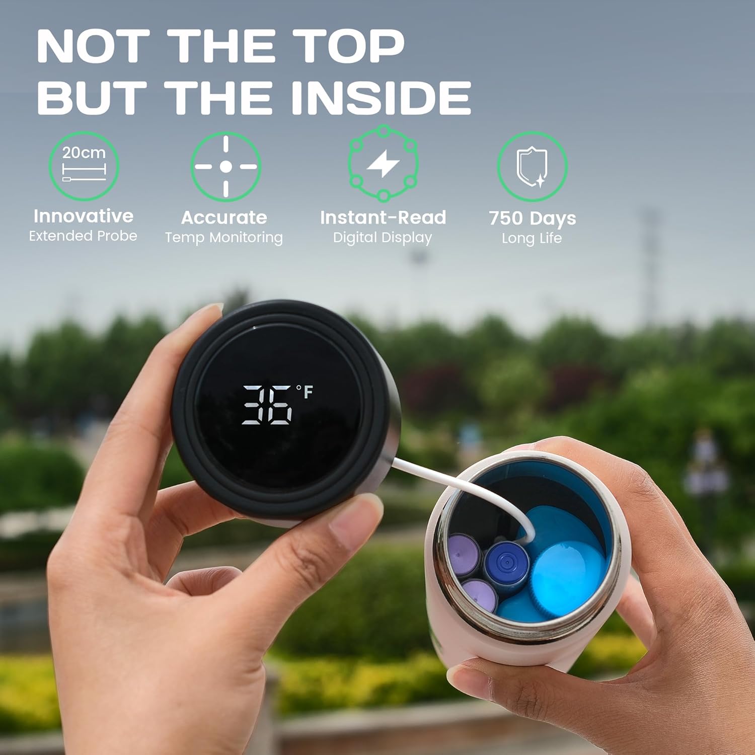 - REAL-TIME TEMPERATURE MONITORING: Stay informed with a bright digital display integrated into the bottle cap, simplifies temperature monitoring and showing you the exact temperature of the insulin at all times, allowing you to always know the temperature of the insulin storage without opening the cooler for enjoy medicine travel