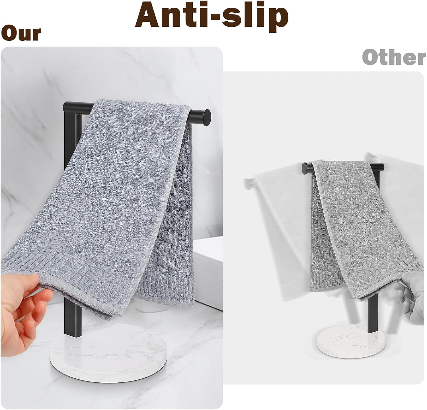 - MARBLE BASE: The base of the towel rack is made of thickened charming marble, with an elegant and unique texture; Equipped with non-slip pads, hand towel holder are not easy to tip over