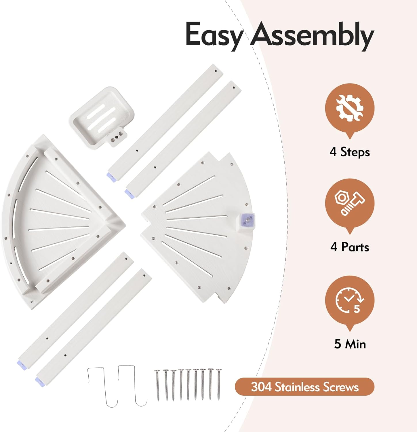 - ăHDPE MaterialăMade of High-density polyethylene (HDPE) and stainless steel hardware, it will not crack, scratch, rust, or fade over time. The triangular structure and the thickened legs ensure the stability of the corner shower bench. In addition, the surface is designed with faux wood grain, making it sturdy and durable while maintaining a vintage and elegant aesthetic.