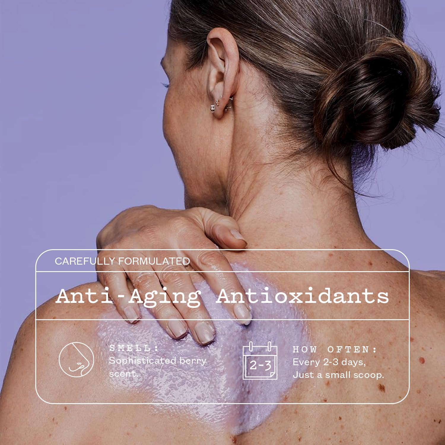 - Berry Boosted Skin Defence: Superfood extracts in this scrub, like goji, acai, and bilberry, help brighten and smooth the skin. It is also infused with skin-loving vitamins and minerals to fight dullness and pollution damage.