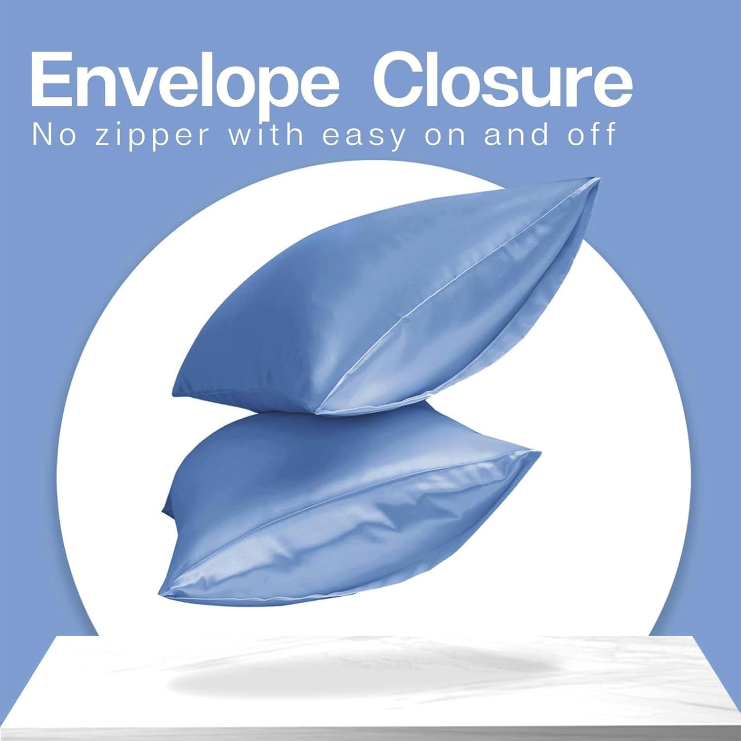 MR&HM Satin Pillowcase for Hair and Skin, Silk Satin Pillowcase 2 Pack, Standard Size Pillow Cases Set of 2, Silky Pillow Cover with Envelope Closure (20x26, Sky Blue)