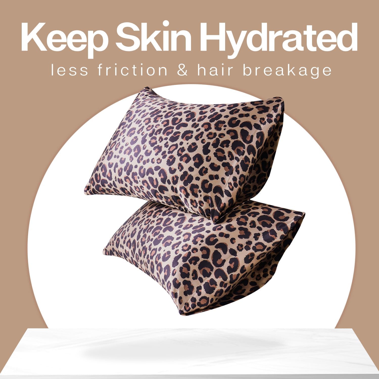 MR&HM Satin Pillowcase for Hair and Skin, Silk Satin Pillowcase 2 Pack, King Size Pillow Cases Set of 2, Silky Pillow Cover with Envelope Closure (20x36, Brown Leopard)