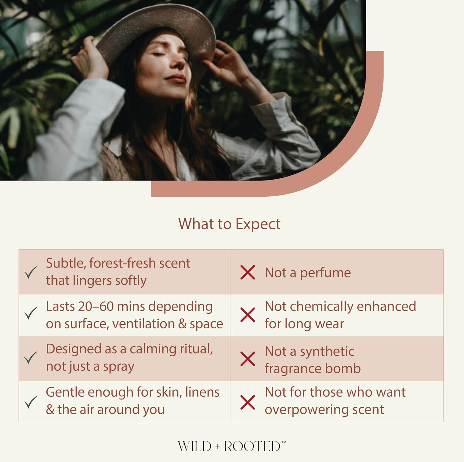 - Ritual-Worthy Scent Experience: Turn everyday moments into mini rituals. Mist in your shower, on your pillow, clothing, or workspace to invite in calm, clarity, and a subtle forest-spa vibe.