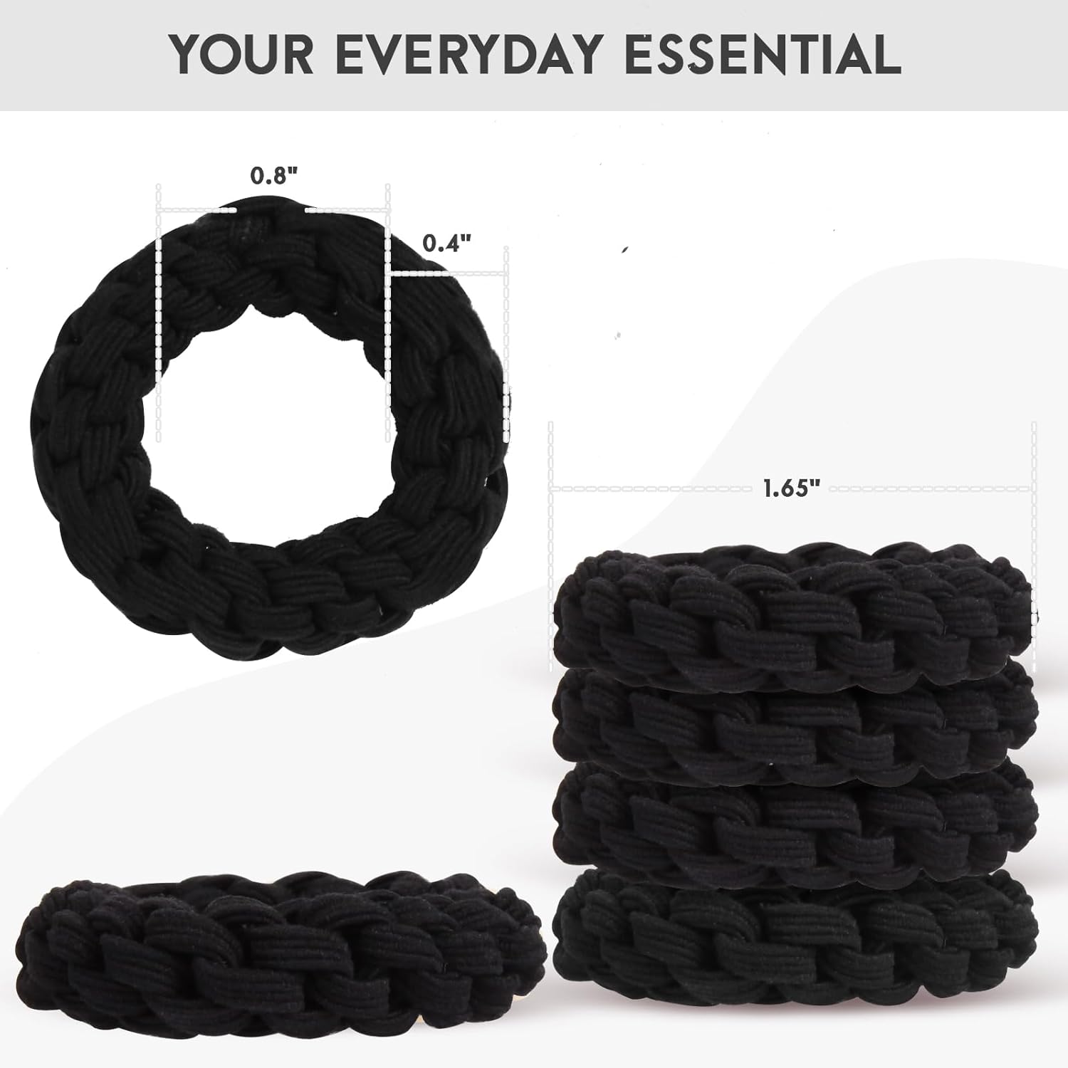 Youxuan Elastic Hair Ties for Women - No Damage, No Slip, No Pull Hair Bands - Comfortable Handmade Braided Polybands for Girls - 10-Pack Black Polyester Scrunchies