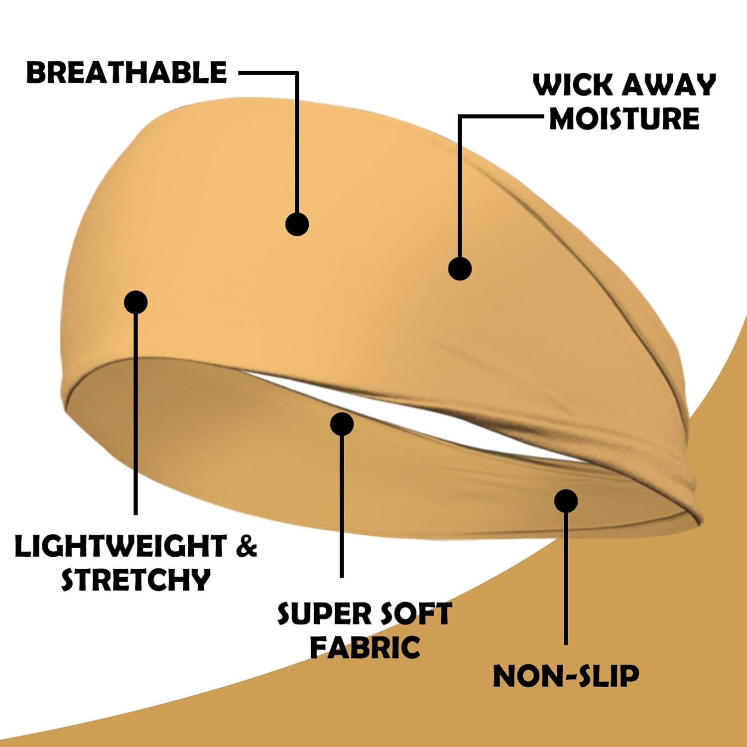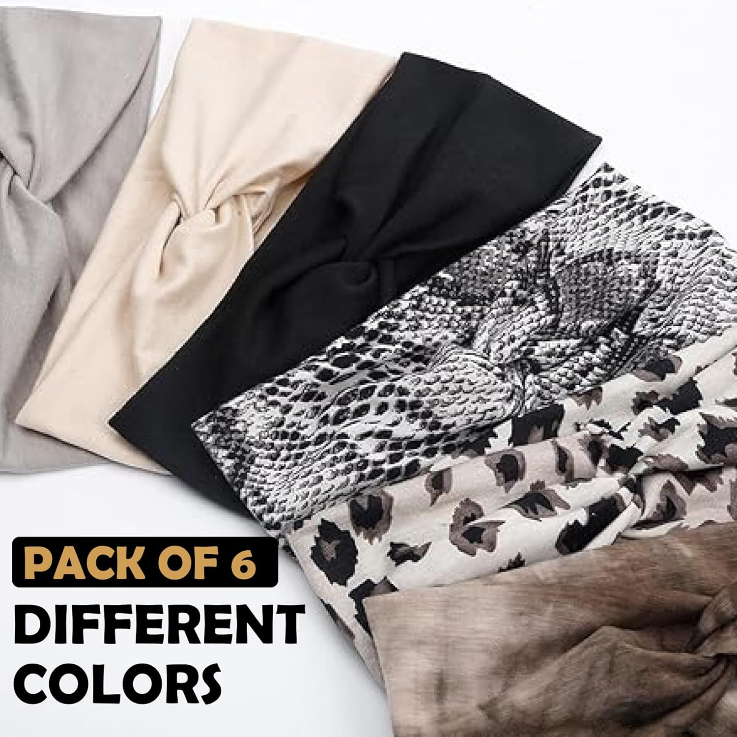 LOTUS78, Pack of 6 Wide Headbands for Women Non Slip, Fashionable Sports Hair Bands for Women's Hair, Soft Elastic Stretchy Head bands, Yoga Workout Headbands for Women Daily Fashion (Safari)