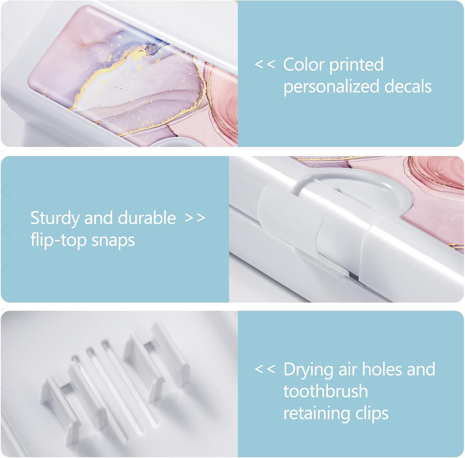 • 【Unique Design】toothbrush holders travel is made of solid white box and colorful patterned resin, which is beautiful and private,The bottom also has air holes to keep the toothbrush case breathable and dry.