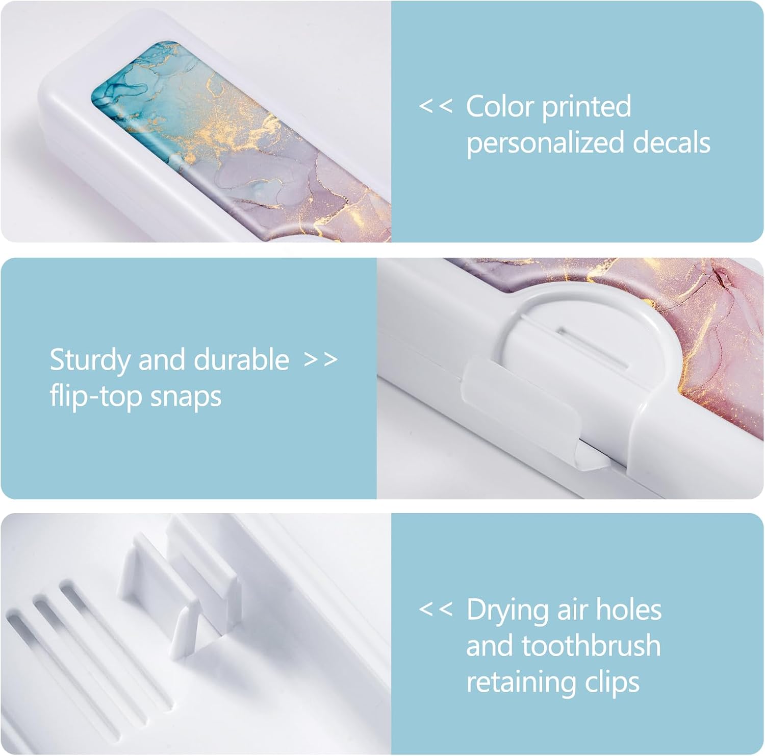 • 【Unique Design】toothbrush holders travel is made of solid white box and colorful patterned resin, which is beautiful and private,The bottom also has air holes to keep the toothbrush case breathable and dry.