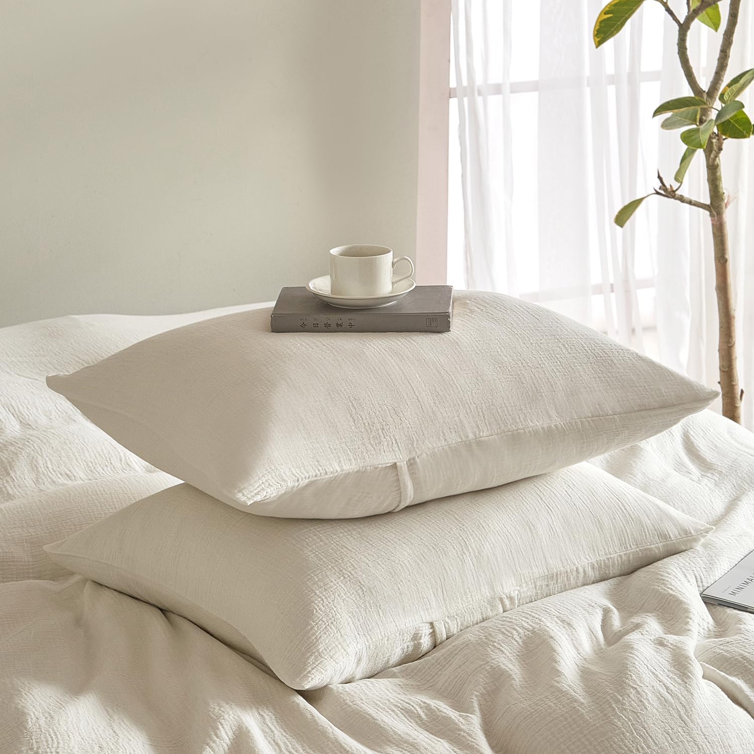 - Chic Crinkle Design: Our crinkle texture pillow case cover adds a touch of sophistication to your bedding.Its crinkled fabric is full of naturalness and delivers cozy vintage charm without the need for ironing. An envelope-style pillowcase with a center back opening ensures easy access to your pillows.