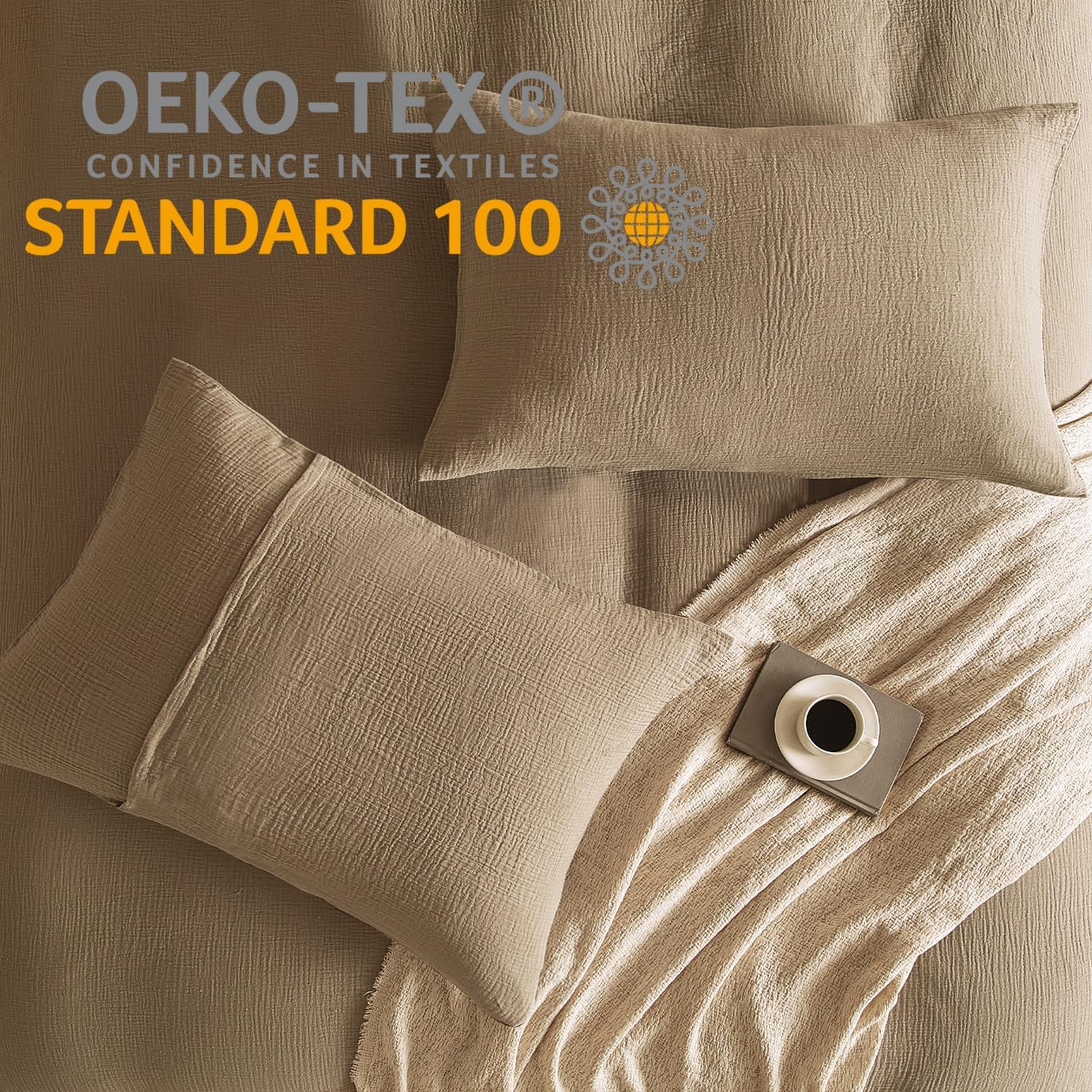 SE SOFTEXLY Muslin Pillowcases King Size 100% Cotton, 2 Pack Linen Like Pillow Shams with Envelope Closure, Ultral Soft and Breathable Pillow Case Covers, Light Brown, 20" X 36", No Filling