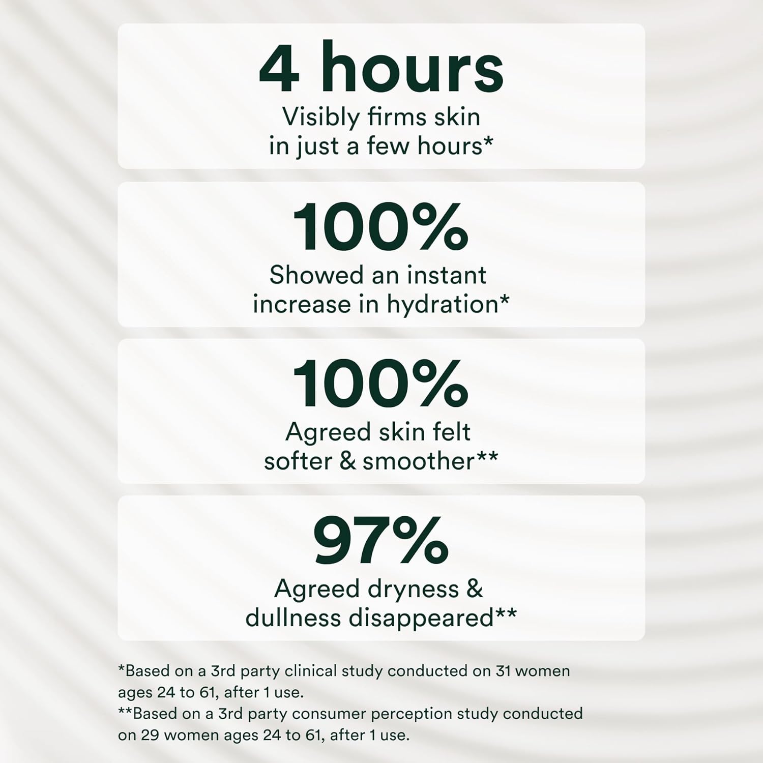 - Instant Firming Hydration: Ultra-hydrating, lightweight body lotion clinically shown to reveal firmer-looking skin in 4 hours. This nutrient-rich, fragrance-free formula with Undaria seaweed & hyaluronic acid delivers lasting hydration for radiant, revitalized skin. Hypoallergenic, dermatologist tested & safe for sensitive skin.
