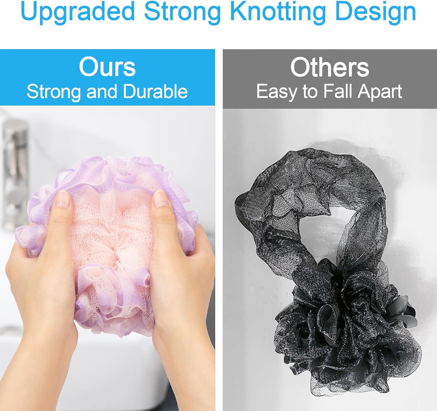 - Strong knotting design: The improved version of the loofah adopts special reinforcement and knotting technology, which greatly enhances the firmness and durability of the internal connection of the bath sponge.