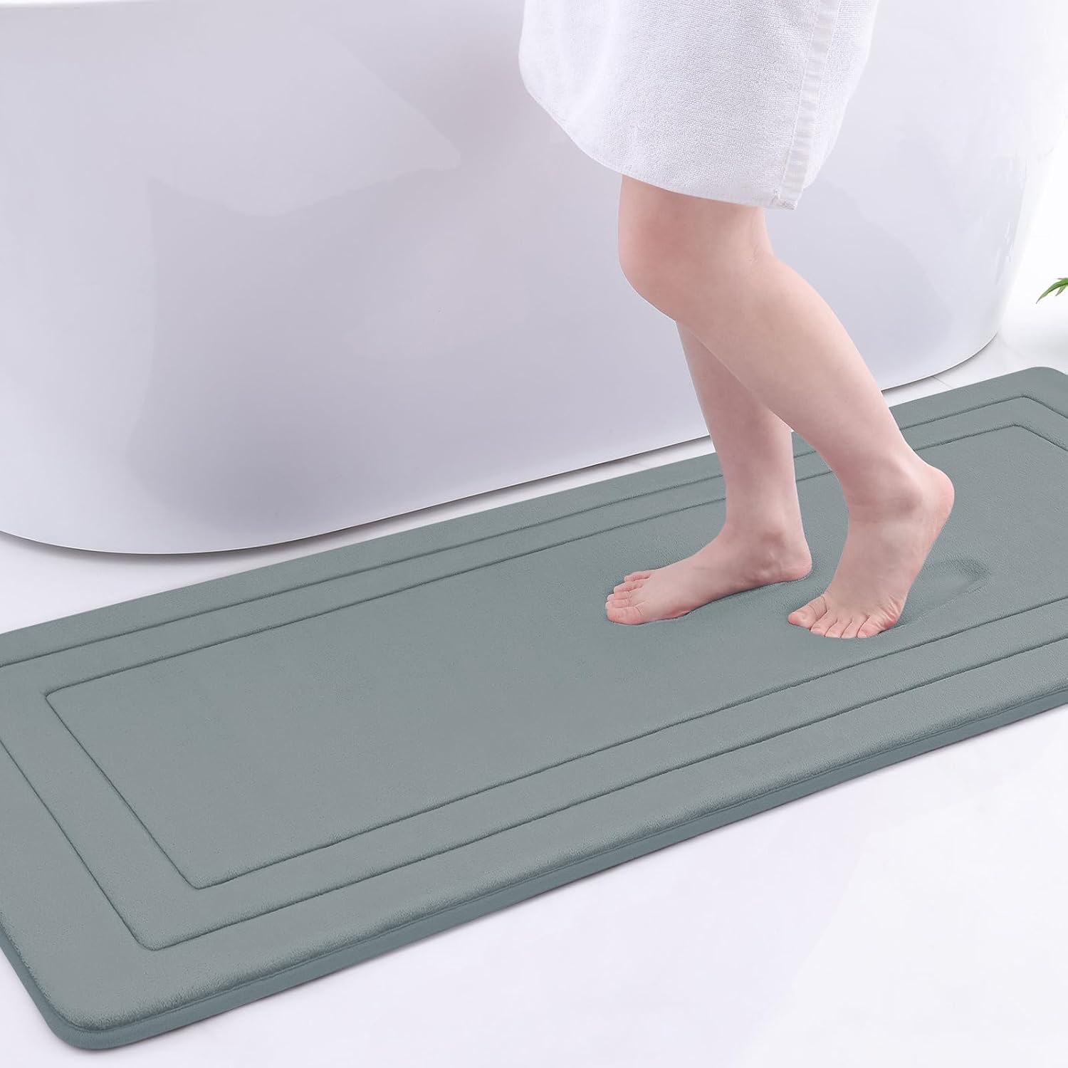- Water Absorption : Our Memory Foam Bathroom Rug Mat features a soft flannel layer that has notable water-absorbing capability, ensuring a dry surface on the bathroom mat while keeping feet dry. Enjoy the convenience of a quick-drying and reliable bath mat