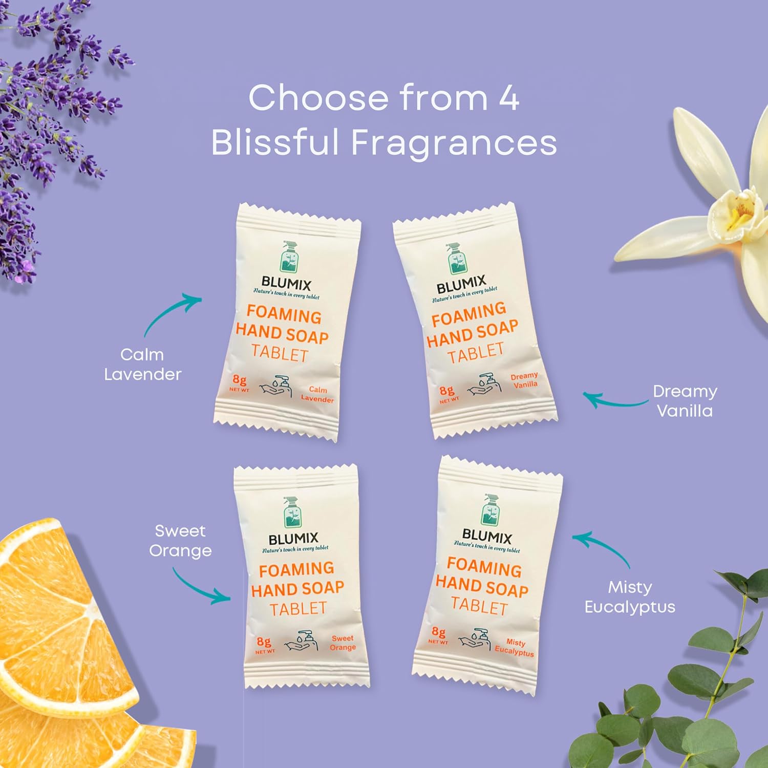 - A Treat For Your Senses - Each pack has six foaming hand soap tablets which equals 6 bottles of hand soap! Available in other blissful scents to choose from: Calm Lavender, Misty Eucalyptus, Dreamy Vanilla, Sweet Orange, Rose, Jasmine, Ylang Ylang & Lilac. Enjoy a refreshing experience every time!