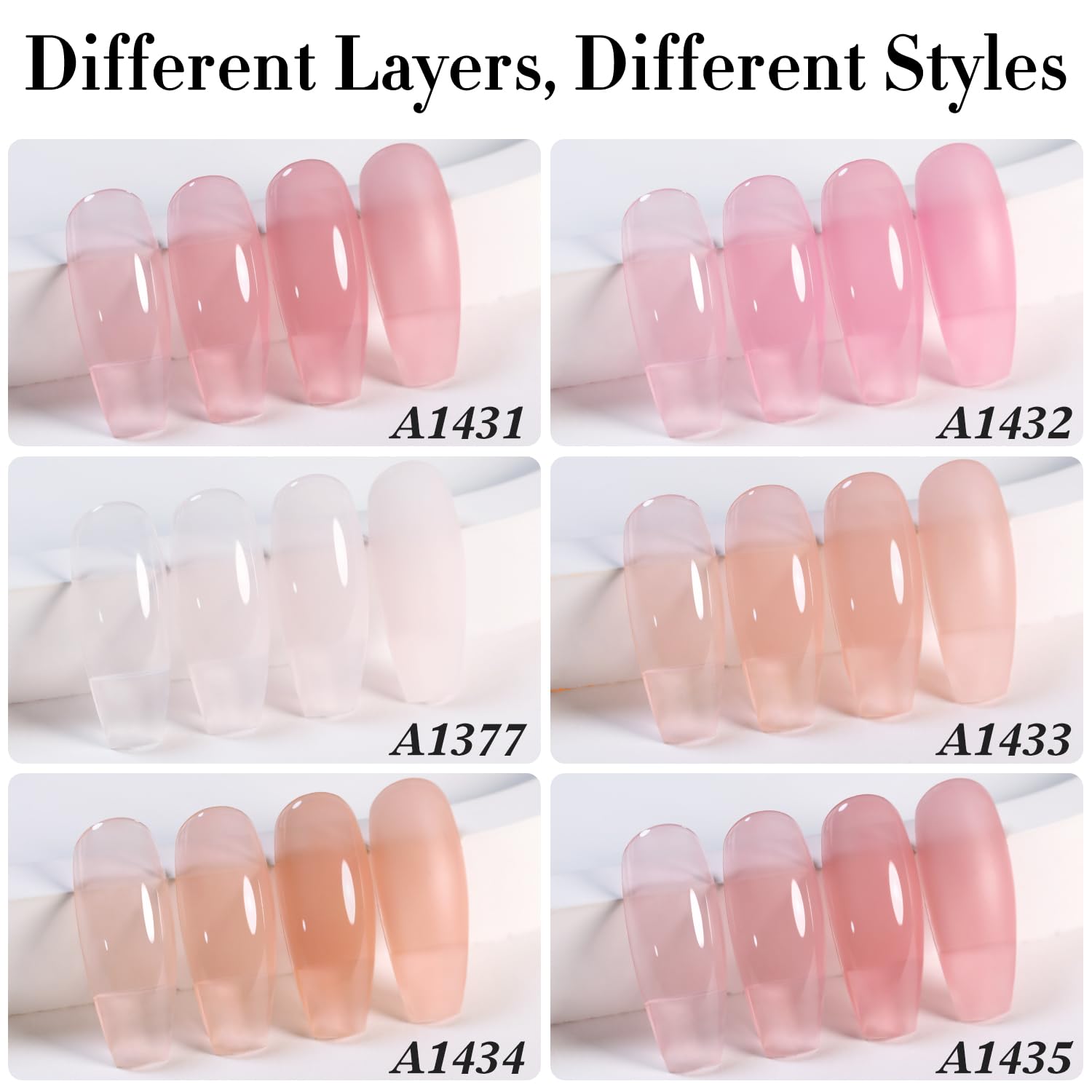 - What You Will Get: Jelly gel nail polish set of 6 colours (7.5ml each bottle) . Sheer Gel Polish colours including nude pink milky white . This polygel nail kit is suitable for all seasons and daily routine life!