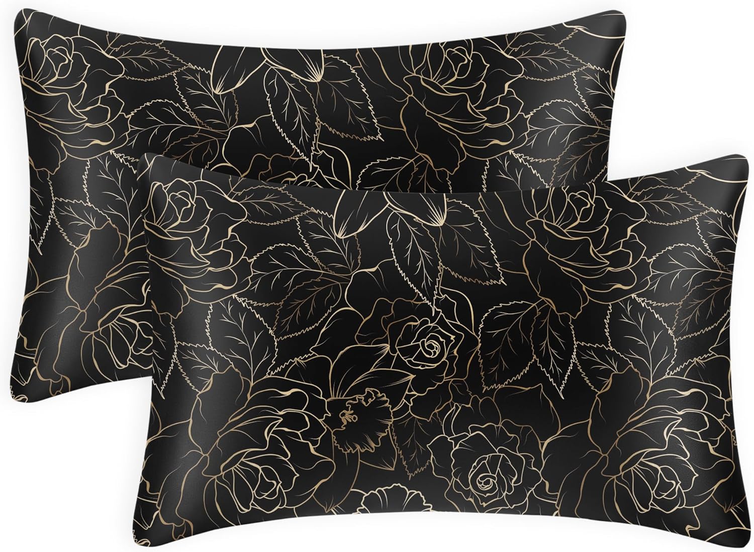 EXQ Home Satin Pillowcase for Hair and Skin- Rose on Black Silk Pillowcase 2 Pack 20x26 inches - Standard Size Pillow Cases with Envelope Closure, Gifts for Women