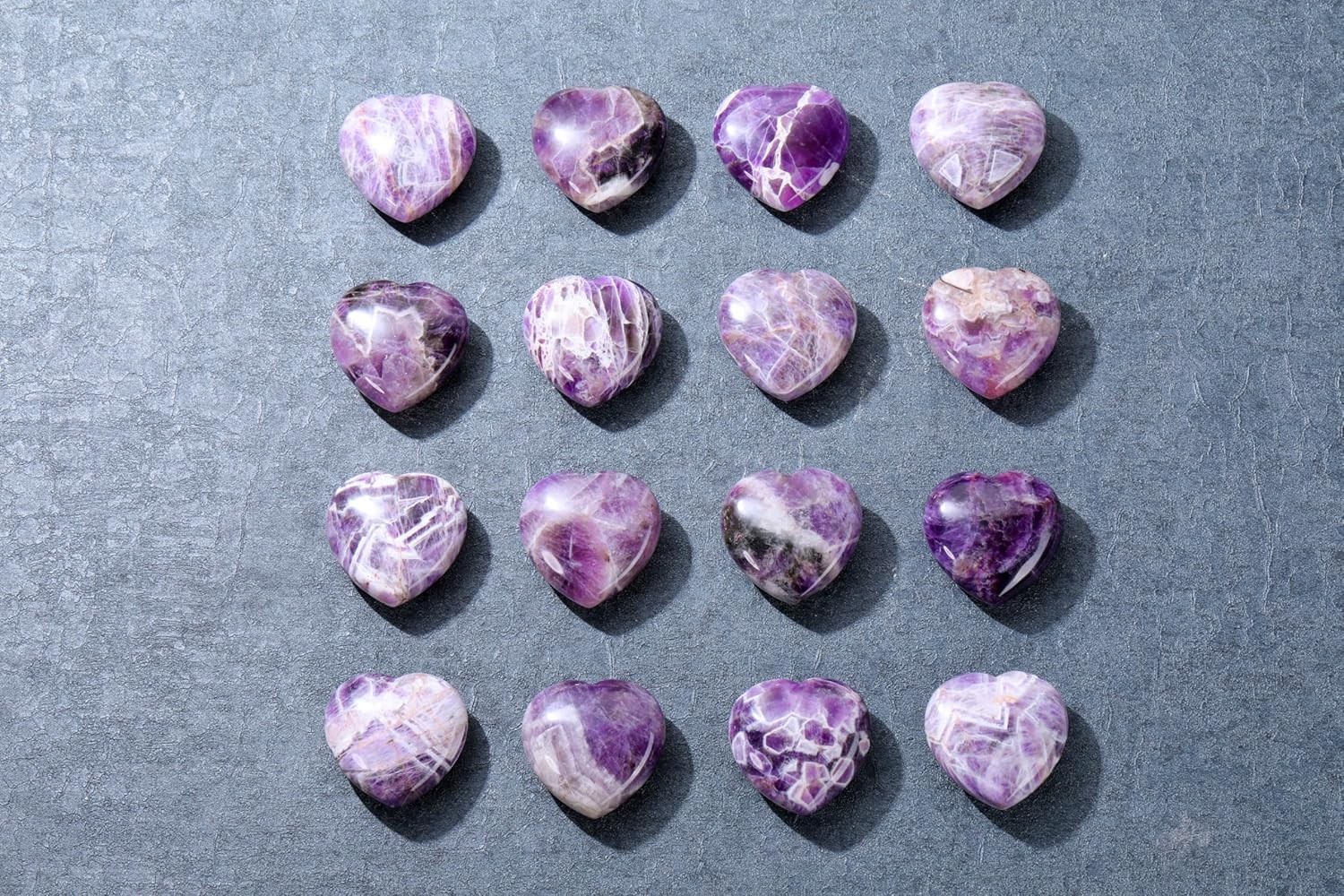 Jovivi 45mm Big Amethyst Crystal Heart Healing Crystals Heart Stones Polished Pocket Love Gemstones Natural Reiki Balancing Meditation Massage Gift Palm Worry Stones for Anxiety