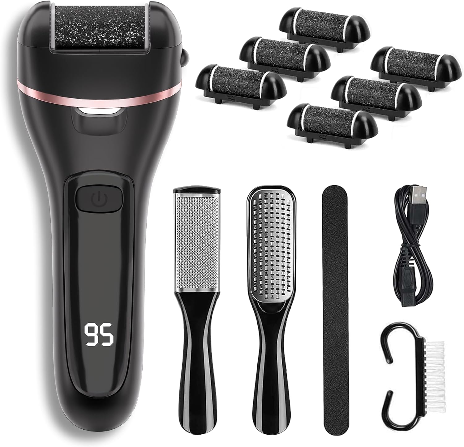 Electric Callus Remover for Feet with 6 Roller Heads 2 Speed Rechargeable Waterproof Foot File Pedicure Kit Foot Spa Products