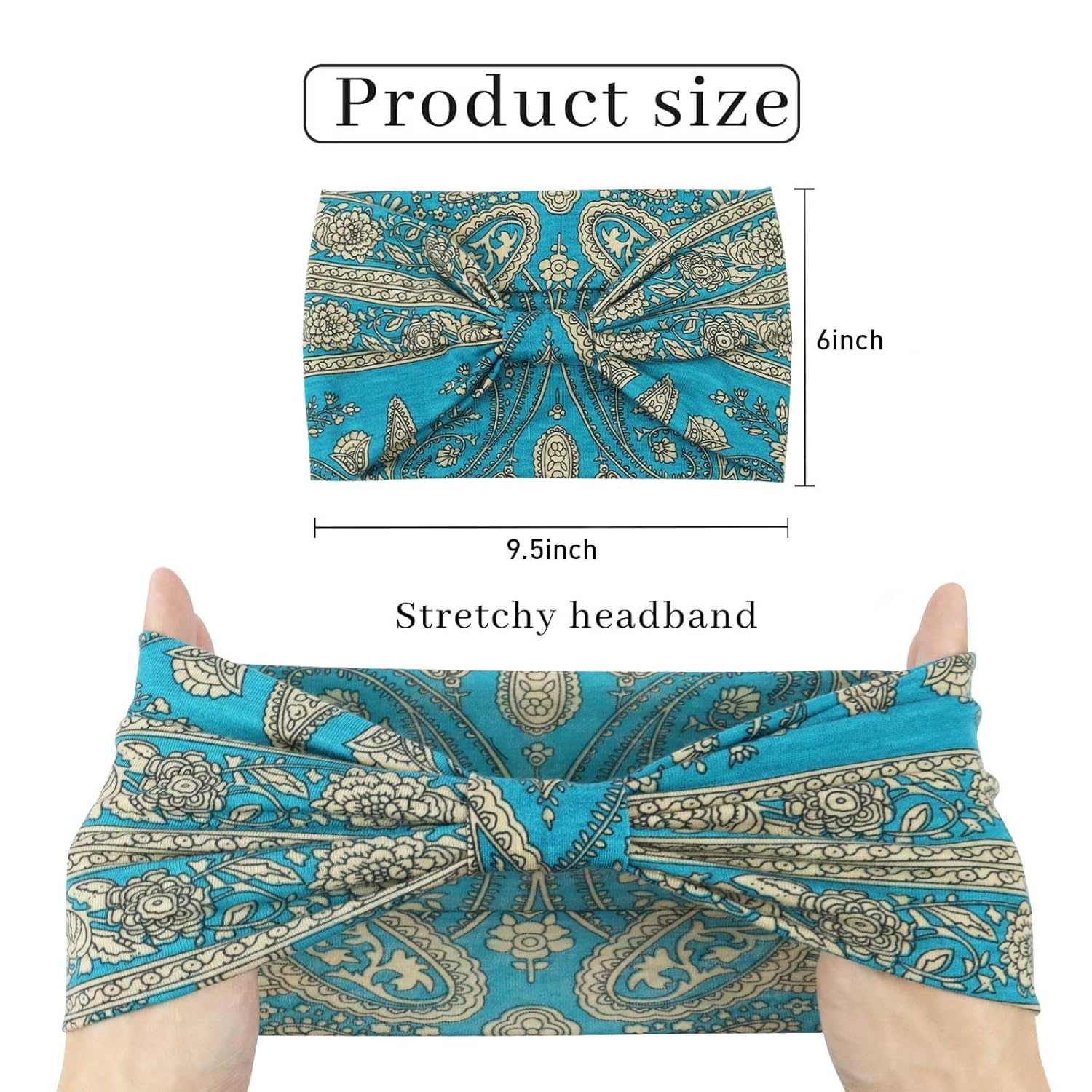 Wide Headbands for Women Knotted No Slip Head Bands Soft Turban Headband Hair Accessories Boho African Solid Color Head Wraps for Women Yoga Workout Pack of 6