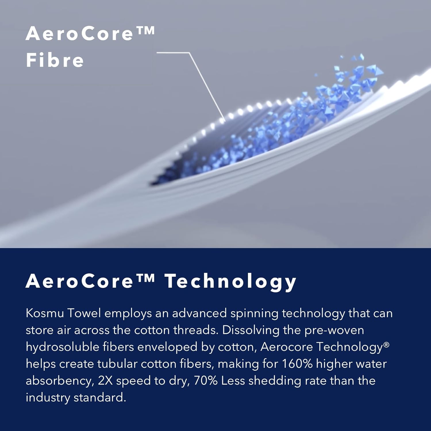- Ultra Absorbent and Quick Dry: While the waffle structure intrinsically maximizes surface exposure for airflow for guaranteed breathability, Aerocore Technology helps create tubular cotton fibers, making for 160% higher water absorbency, 2X speed to dry, 70% Less shedding rate than the industry standard.