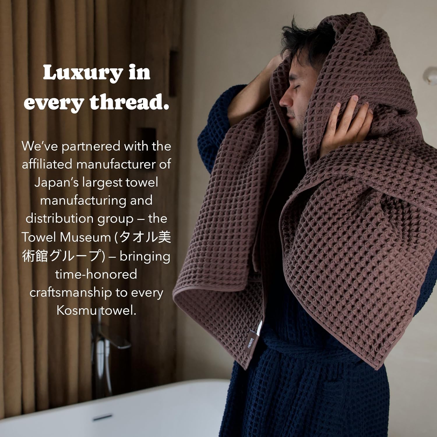 - Get bone dry every A.M.: While the waffle structure intrinsically maximizes surface exposure for airflow for guaranteed breathability, allowing the towel to dry itself out quickly, we have fundamentally improved the performance of Kosmu Towel with advanced science and technology.