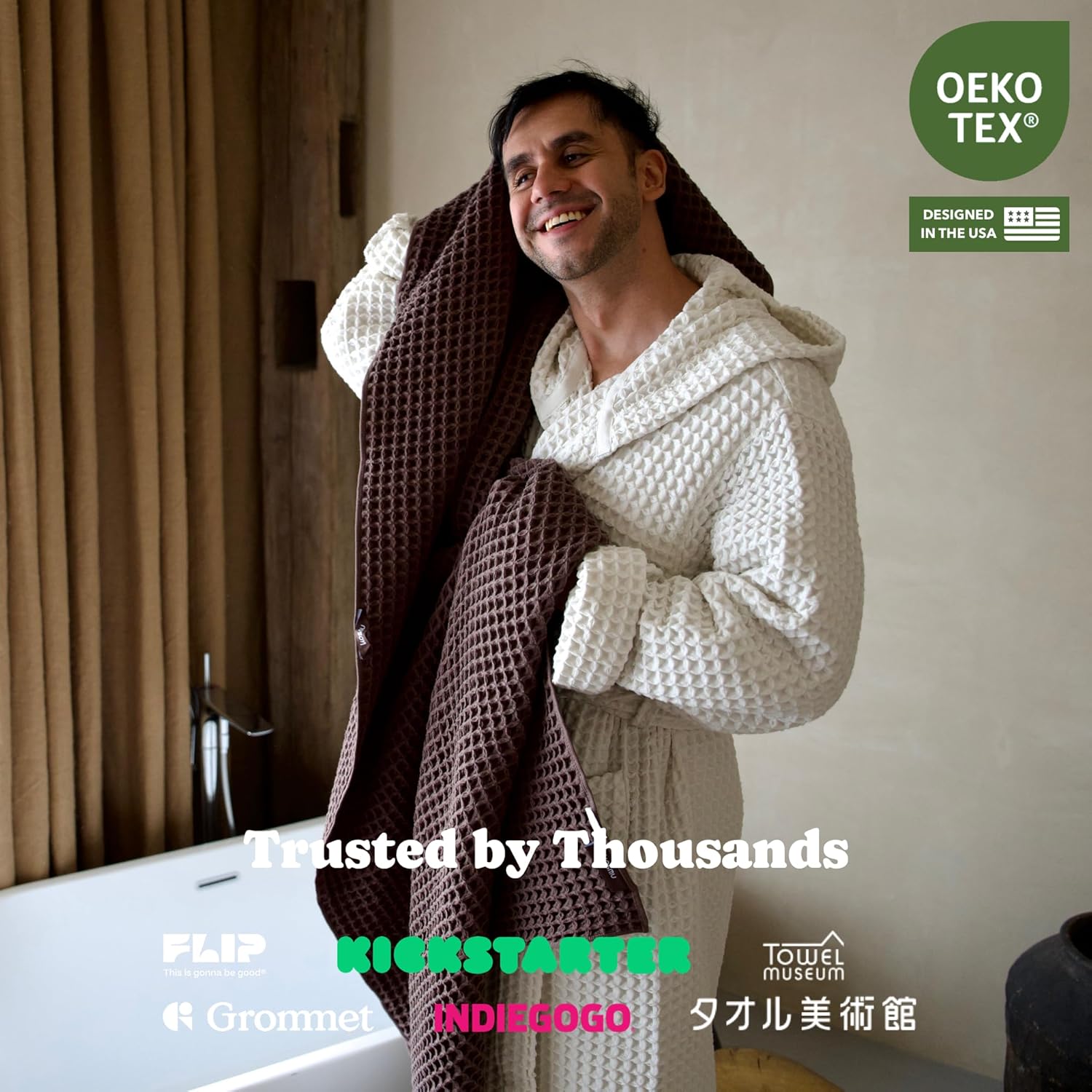 Luxury Japanese Cotton Waffle Bath Towel | Plush, Absorbent, and Quick Dry | Free Storage Bag Included (Dark Cocoa, Bath Sheet, 67" x 34")