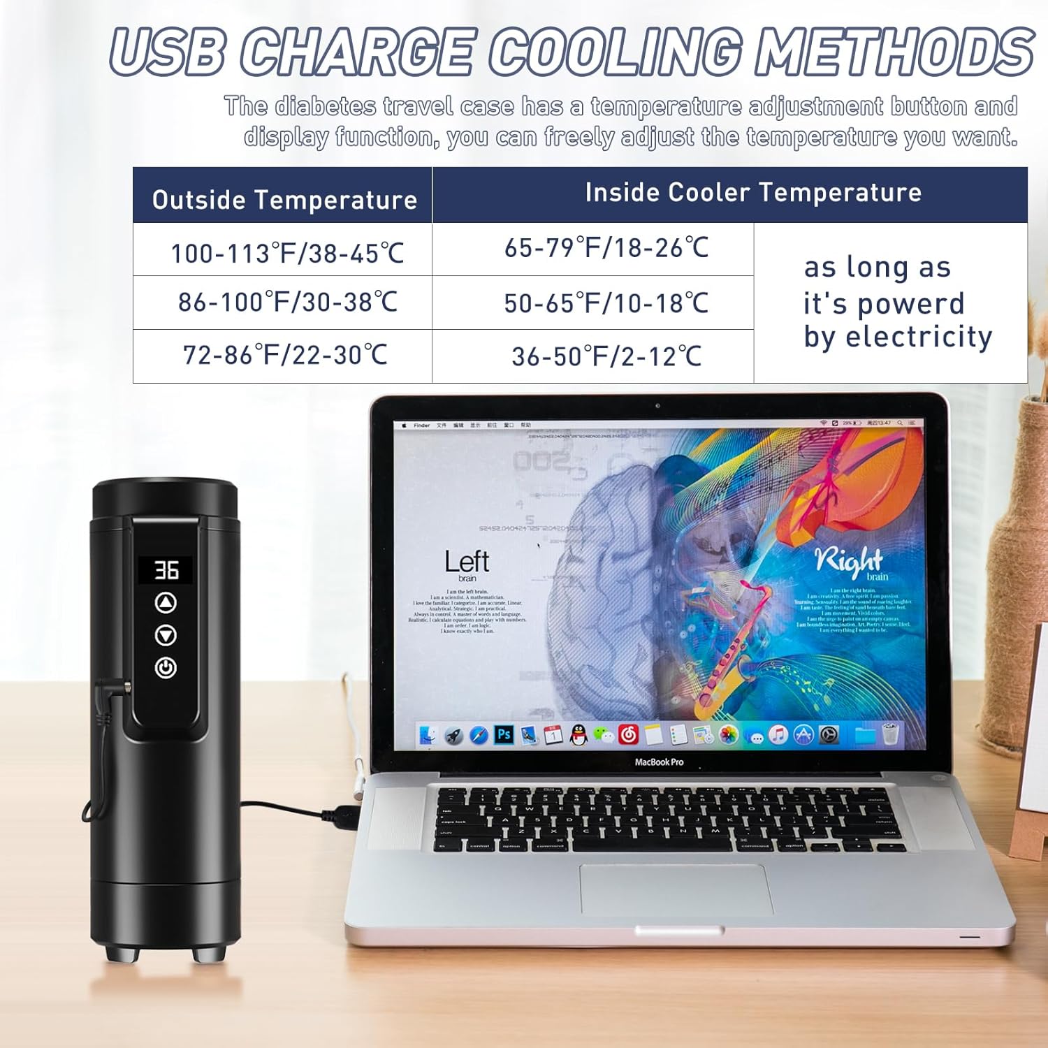 - USB CHARGE: This insulin cooler travel case uses USB charge; No matter you are in the car, airplane, train, or at the computer, power bank, car lighter, the travel medicine kit can be used to meet your needs in all scenarios