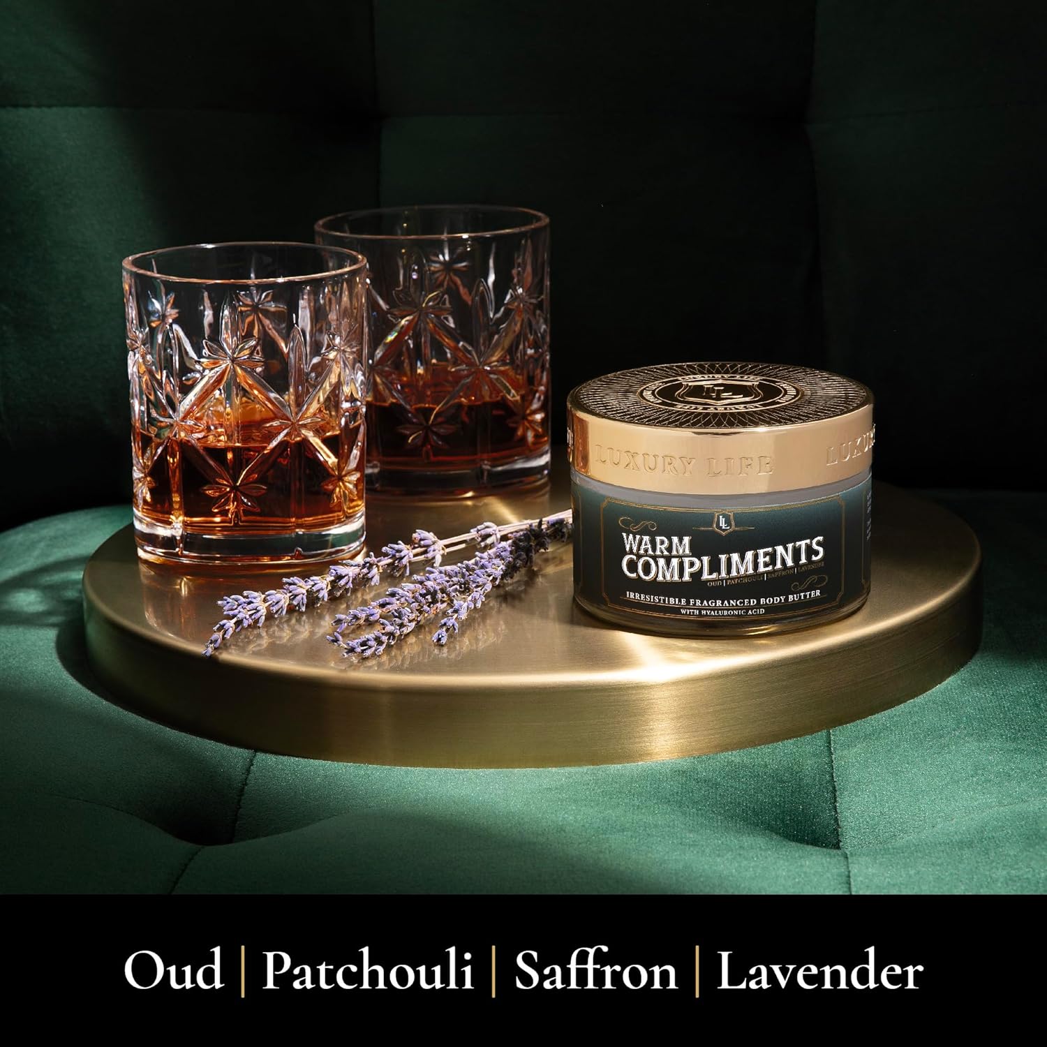 LUXURY LIFE Bed Butter - Scented, Luxurious Body Butter With All-Natural Hyaluronic Acid For Soft, Glowing, Hydrated Skin - For Men & Women - For All Skin Types - Warm Compliments Scent, 5 oz