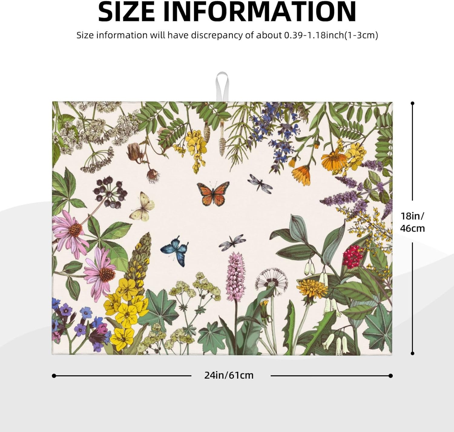 Wild Flower Herbs Dish Drying Mat For Kitchen Counter Absorbent Large Kitchen Fast Dry Pad Reusable Washable Protector Rack Large Mat 18 X 24