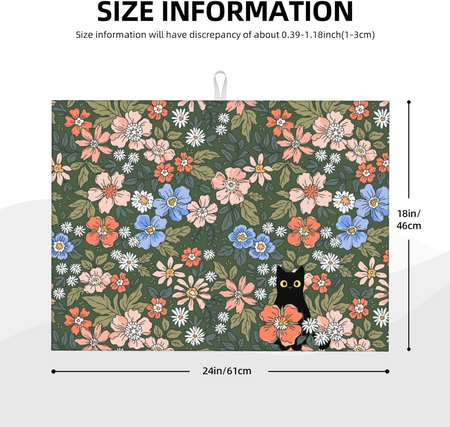 Black Cat Floral Dish Drying Mat For Kitchen Counter Absorbent Large Kitchen Fast Dry Pad Reusable Washable Protector Rack Large Mat 18 X 24