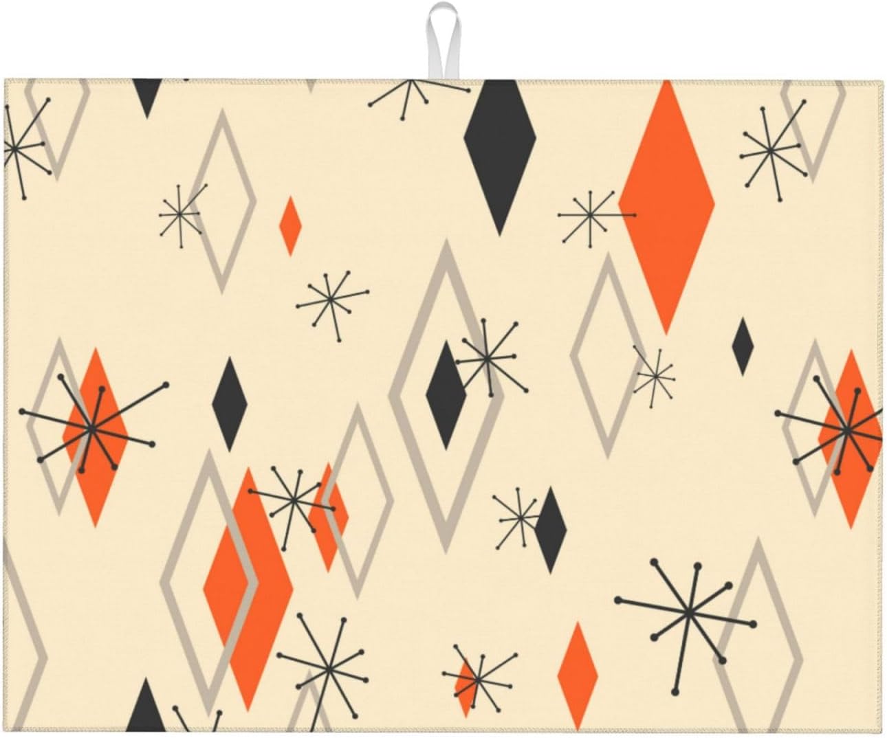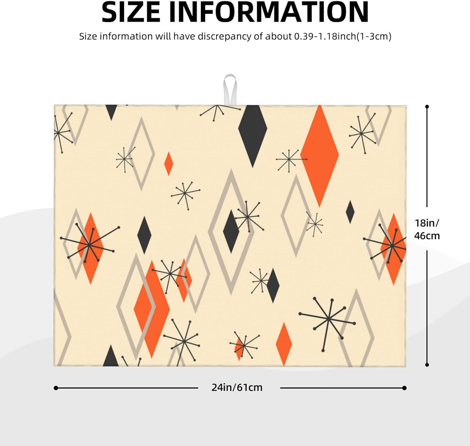 Retro Geometric Pattern Dish Drying Mat For Kitchen Counter Absorbent Large Kitchen Fast Dry Pad Reusable Washable Protector Rack Large Mat 18 X 24