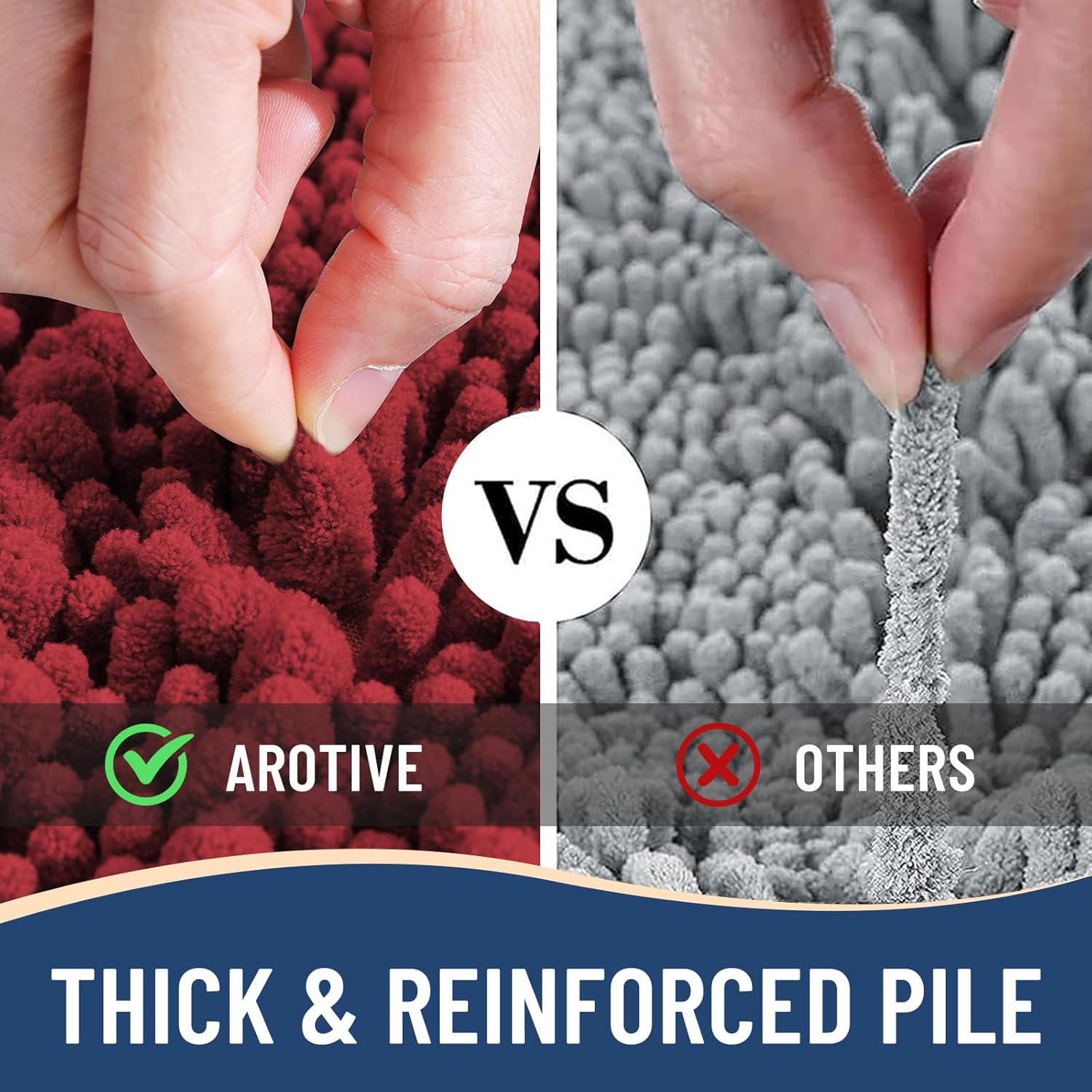 Arotive Luxury Chenille Bathroom Rug Mat, Extra Soft Thick Absorbent Shaggy Bath Rugs, Non-Slip Machine Wash Dry, Plush Bath Mats for Bathroom, Shower and Tub, 24x16, Red