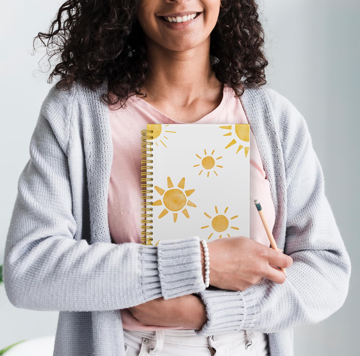 Boho Yellow Sun Sunshine Notebook Journal, Sunshine Gifts for Women, Cute Notebooks for Office, Notebooks for Work Note Taking, Spiral Notebook 5.5x8.3 with 164 Pages