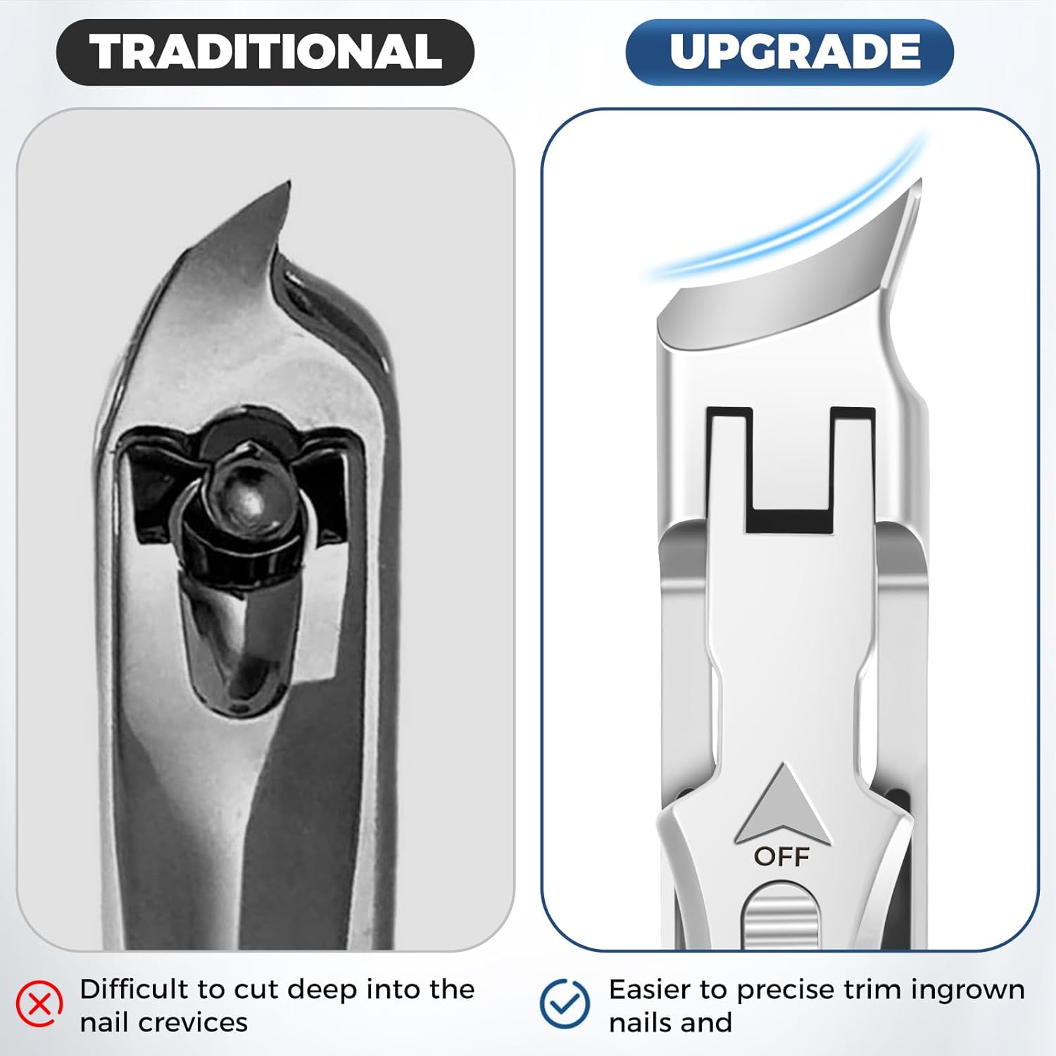 - 【45°Slant Curved Blade for Ingrown Toenail Clippers】: This slant nail clipper adopts a newly upgraded oblique curved blade design, which designs the curvature according to the natural shape of the nails, perfectly fitting the curvature of the nails. The tip of this nail cutter can accurately trim the embedded, sharp corners, small corners, stratum corneum, and peeling skin of your toenails, ensuring smooth and efficient trimming of your nails and avoiding injury