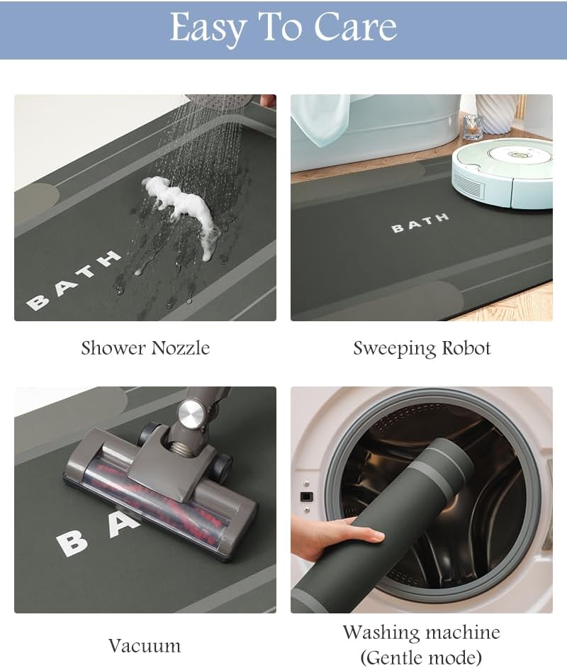- Easy Clean& Quick Dry: Cleaning is a breeze with the stain-resistant surface, making it ideal for households with pets. A simple wipe or rinse will restore the shower rug to its brand-new appearance. The quick dry bath mat's numerous tiny pores facilitate fast water evaporation in natural air, magically vanishing watermarks within minutes. Bathroom mat quick dry and won’t be too damp for the next user.